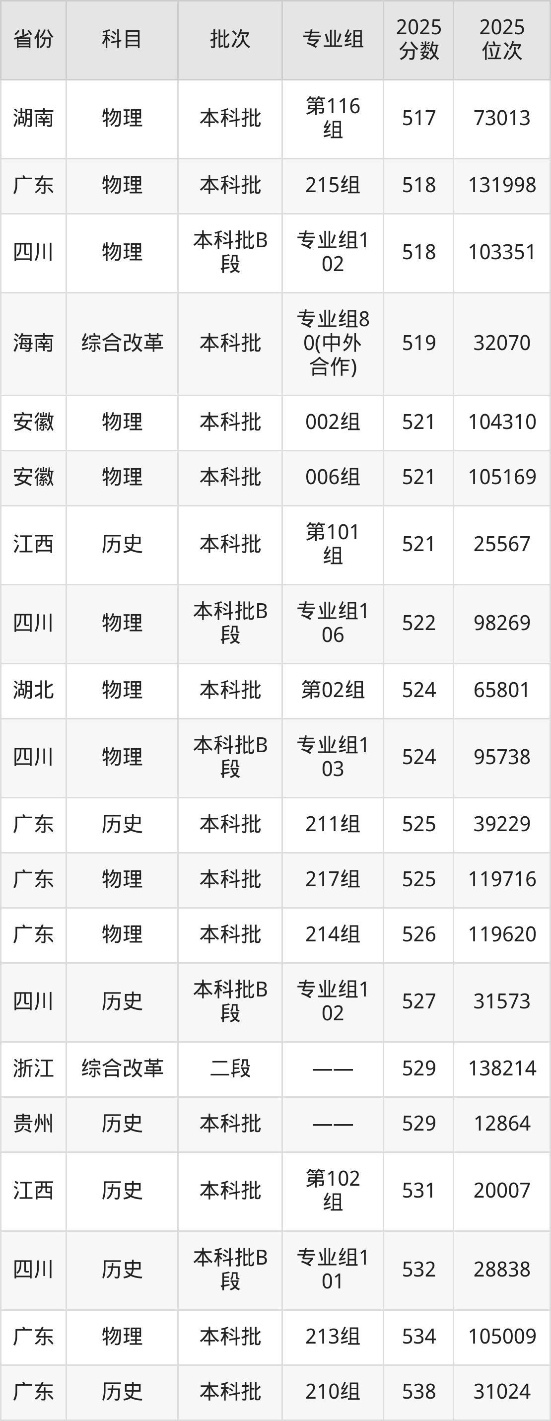 最高录取分数线是534分,对应位次是105009名,招生地区为广东。