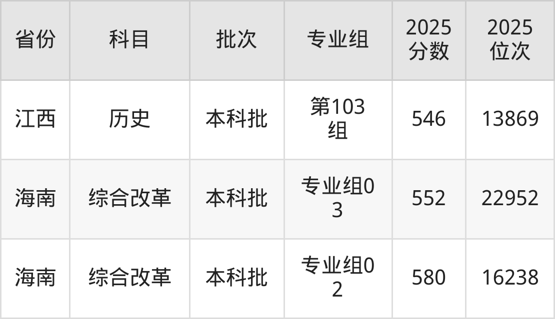 最高录取分数线是580分,对应位次是16238名,招生地区为海南。