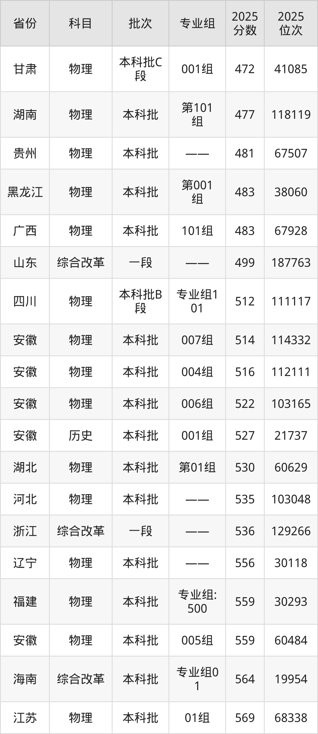 最低录取分数线是527分,对应位次是21737名,招生地区为安徽。