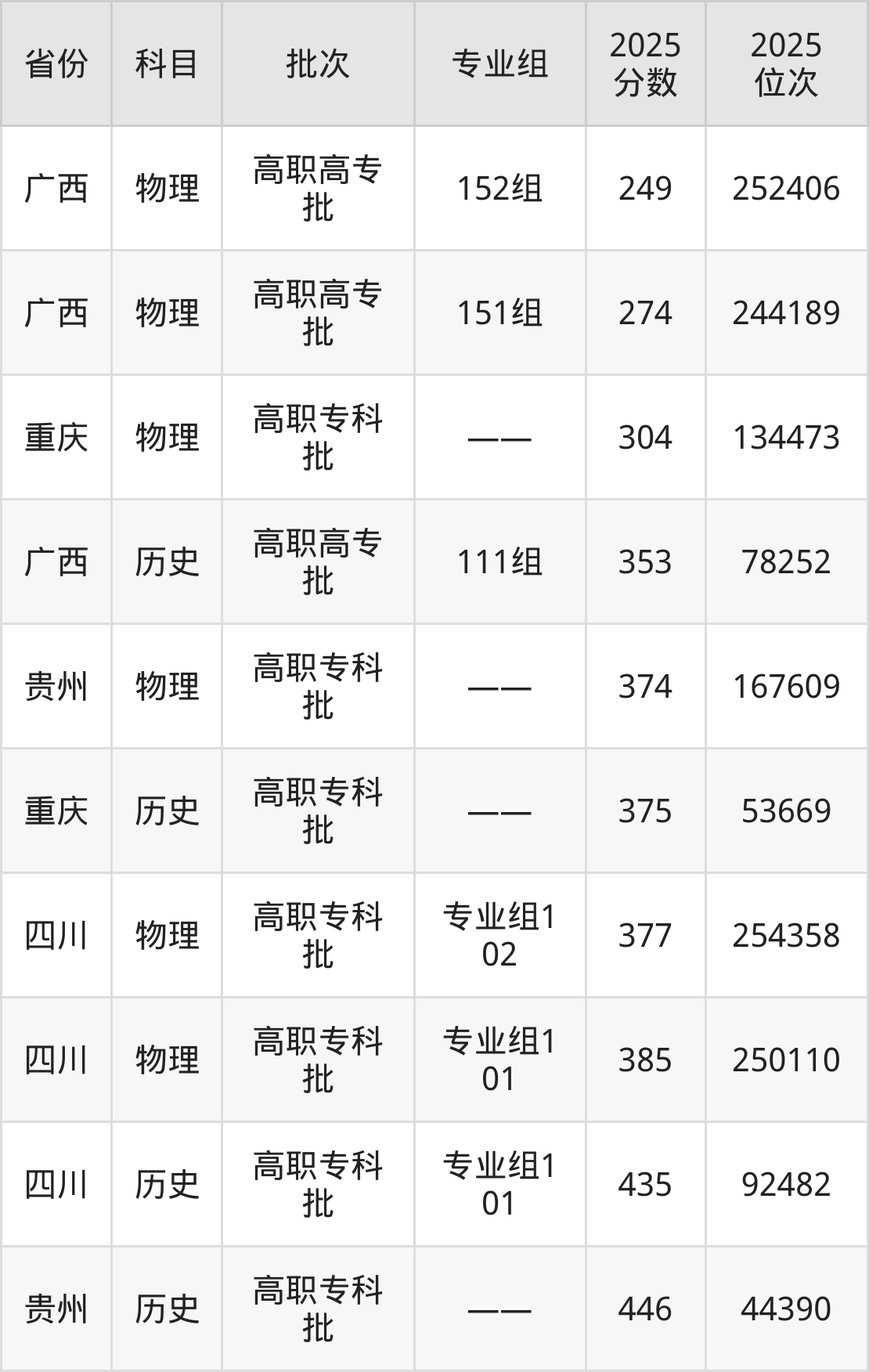 最高录取分数线是385分,对应位次是250110名,招生地区为四川。