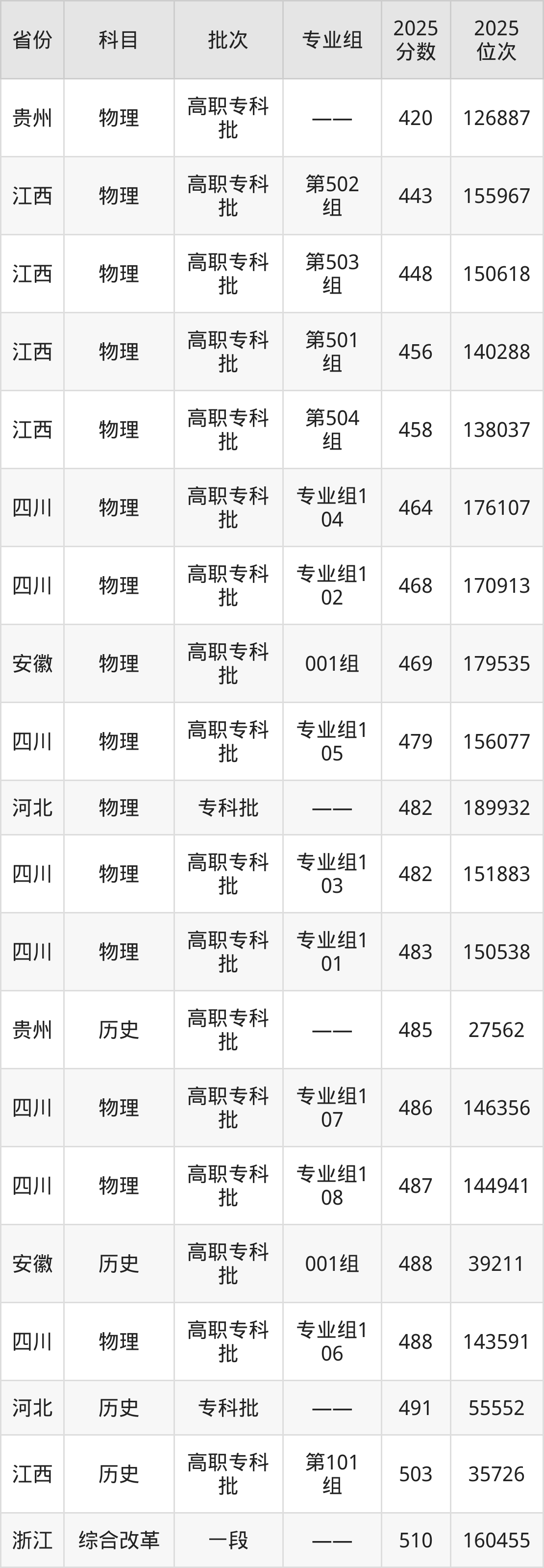 2025年杭州职业技术大学在各省物理类的录取分数线位于420分-488分之间。