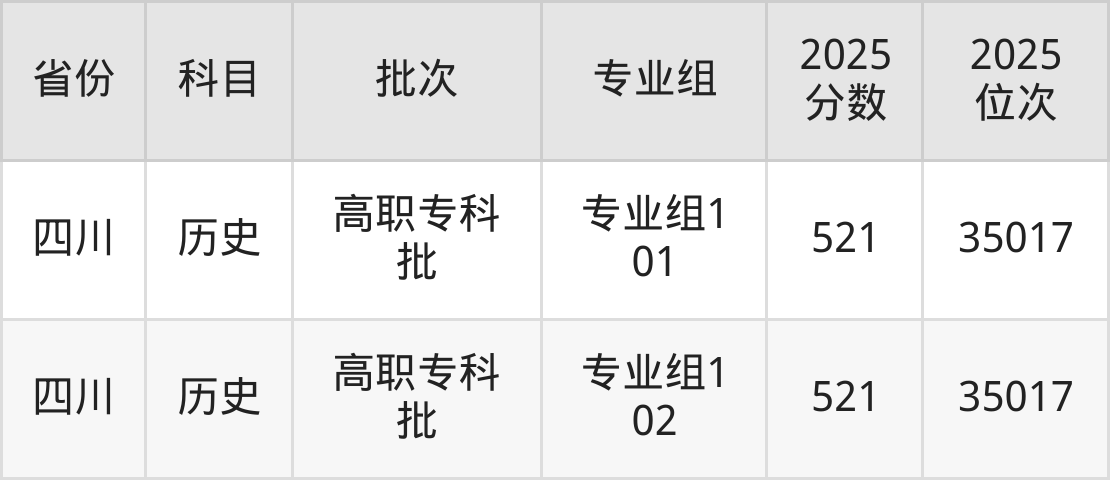 最高录取分数线是521分,对应位次是35017名,招生地区为四川。