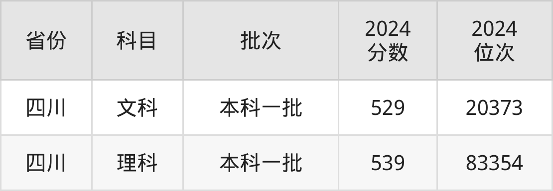 最低录取分数线是539分,对应位次是83354名,招生地区为四川。