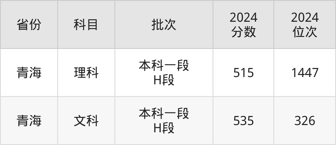 最低录取分数线是515分,对应位次是1447名,招生地区为青海。