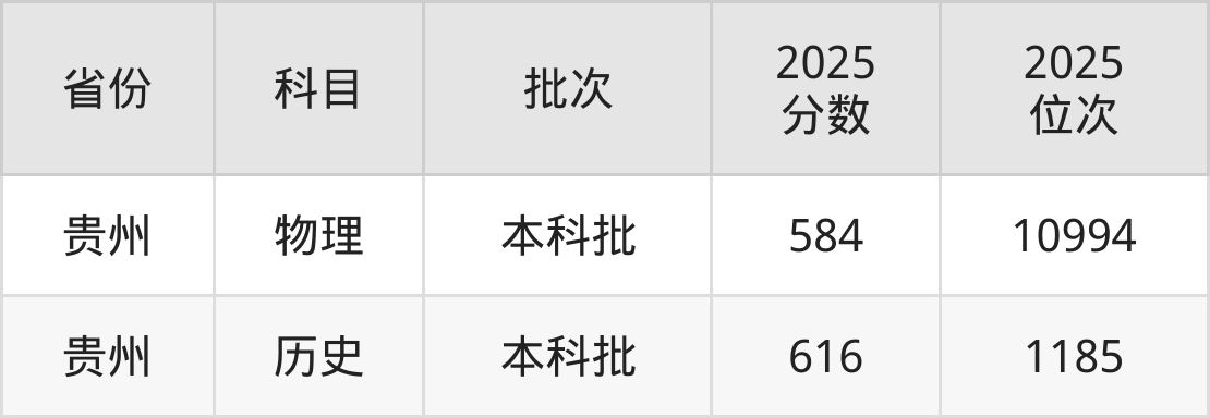 最低录取分数线是616分,对应位次是1185名,招生地区为贵州。