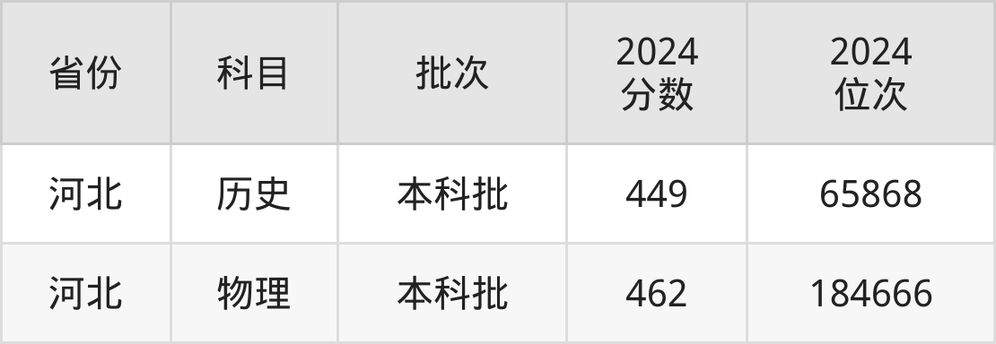 最低录取分数线是462分,对应位次是184666名,招生地区为河北。