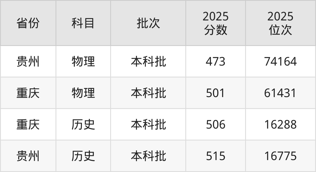 最高录取分数线是515分,对应位次是16775名,招生地区为贵州。