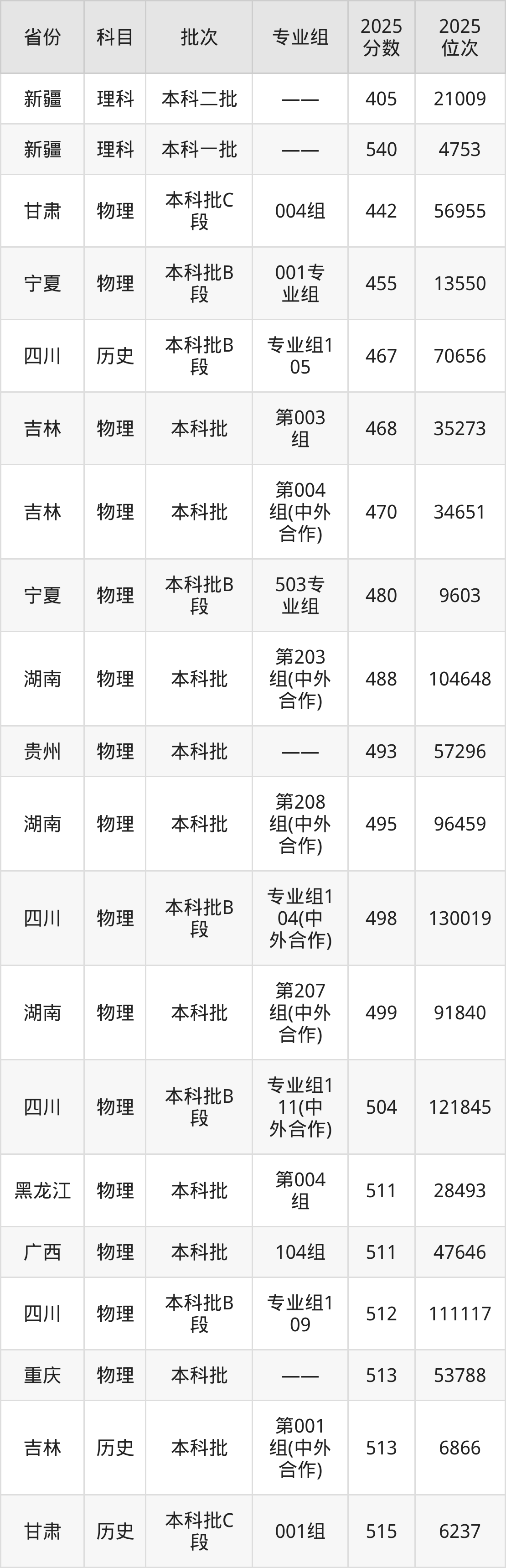 最低录取分数线是467分,对应位次是70656名,招生地区为四川;