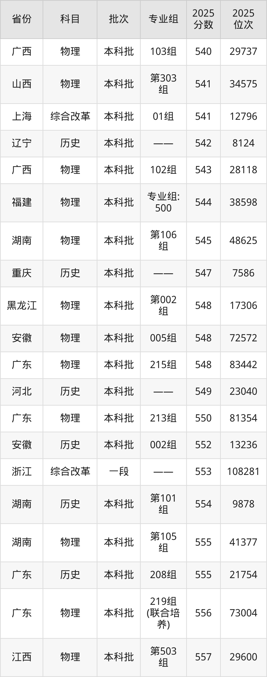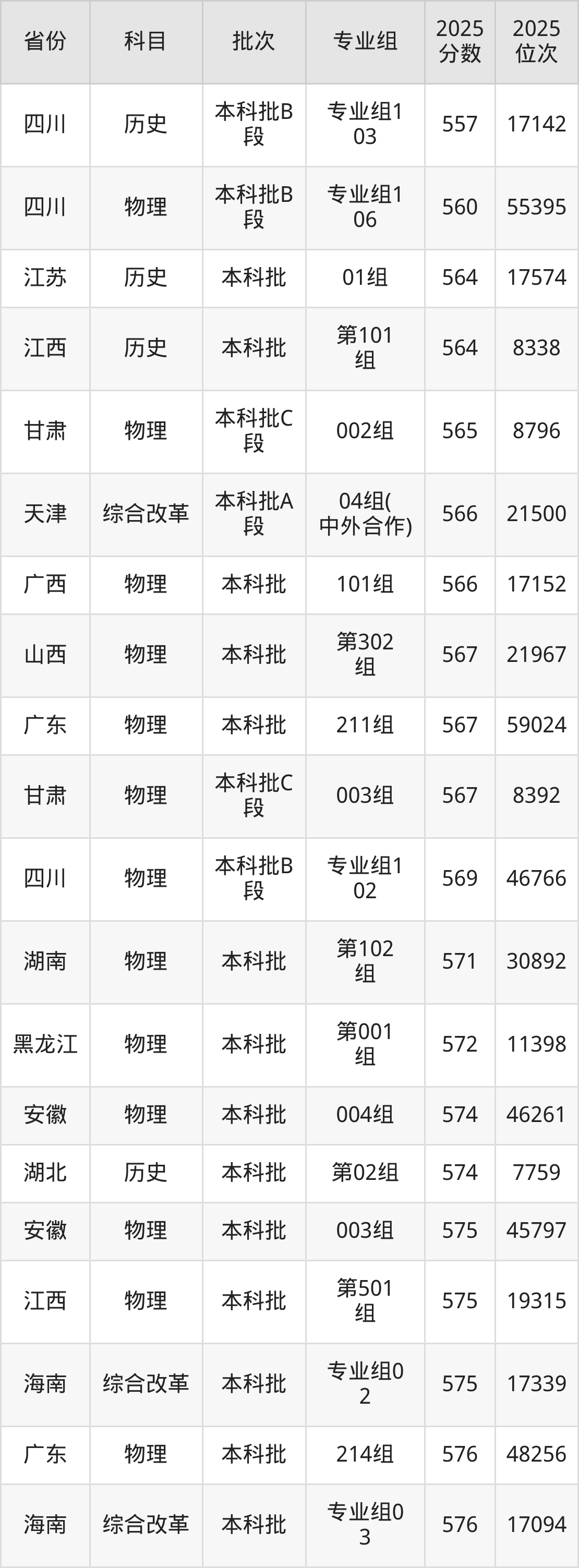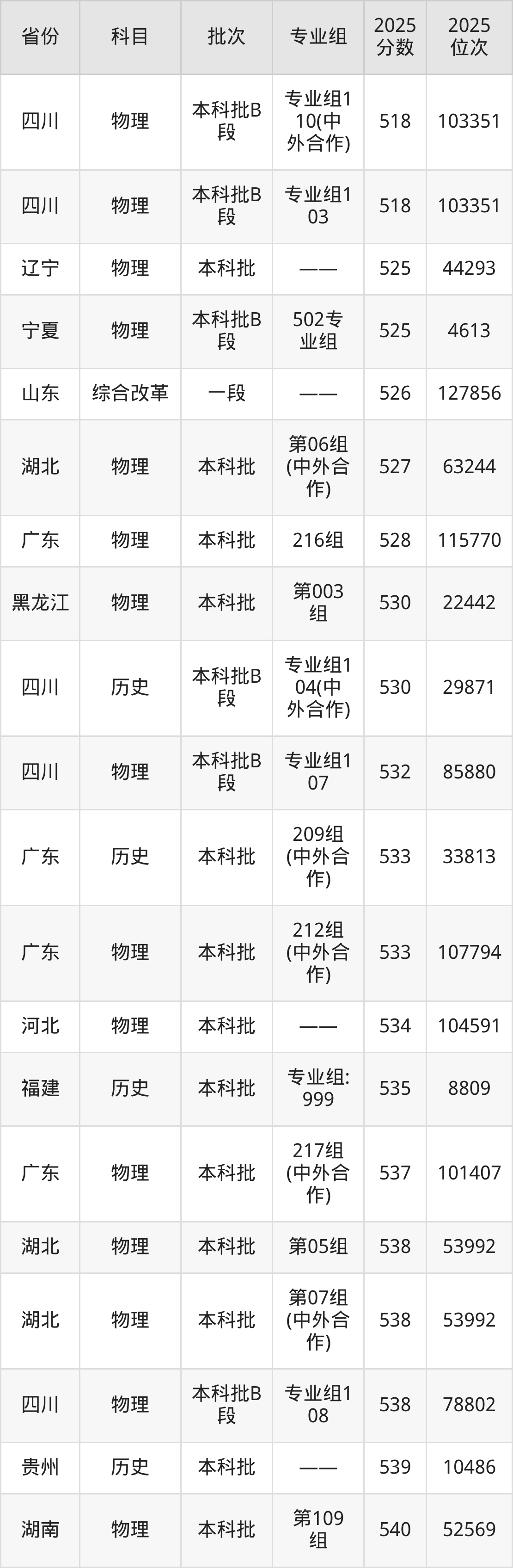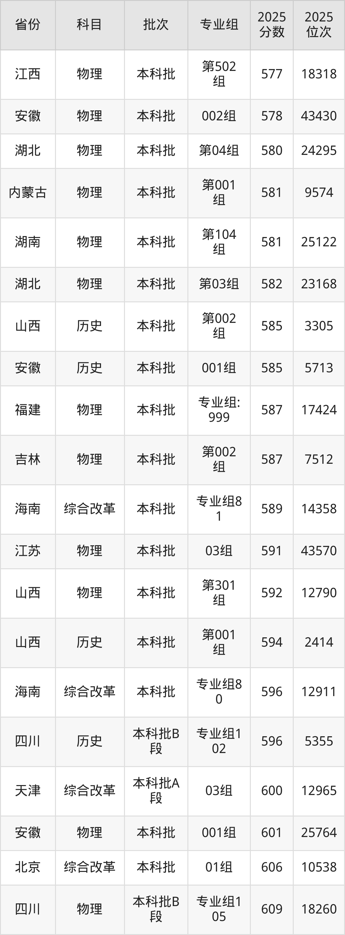 2025年成都中医药大学在各省普通批录取分数线一览表: