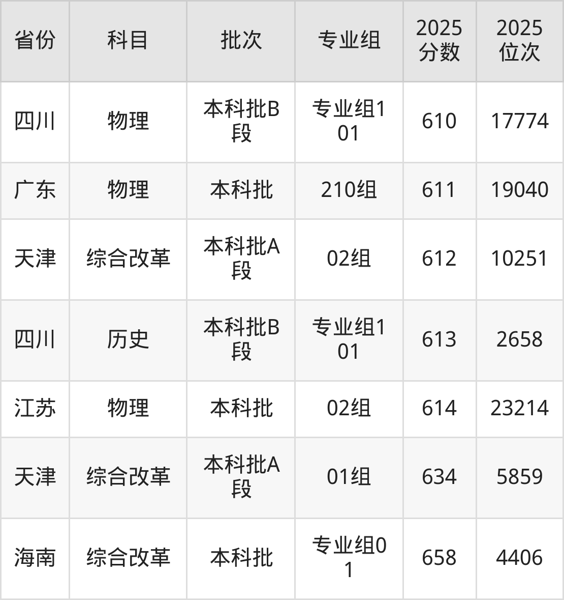 最高录取分数线是658分,对应位次是4406名,招生地区为海南。