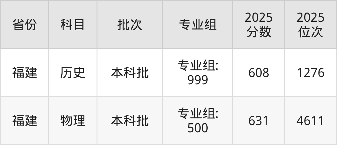 最低录取分数线是631分,对应位次是4611名,招生地区为福建。