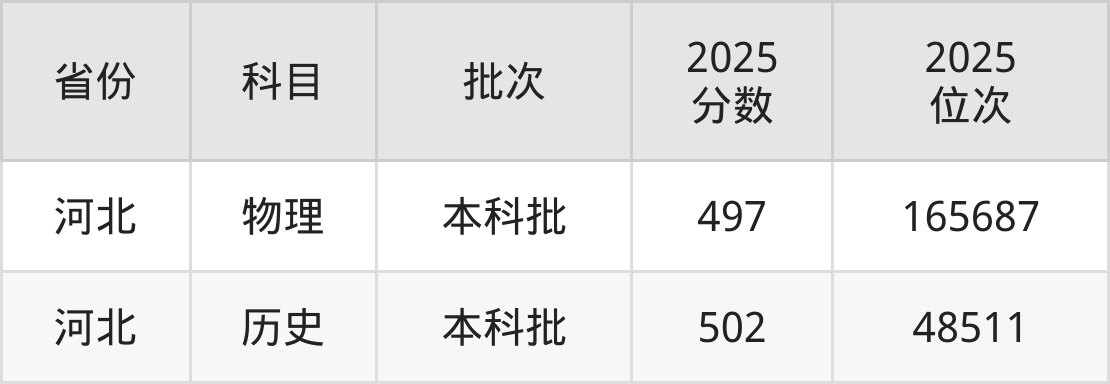 最低录取分数线是502分,对应位次是48511名,招生地区为河北。