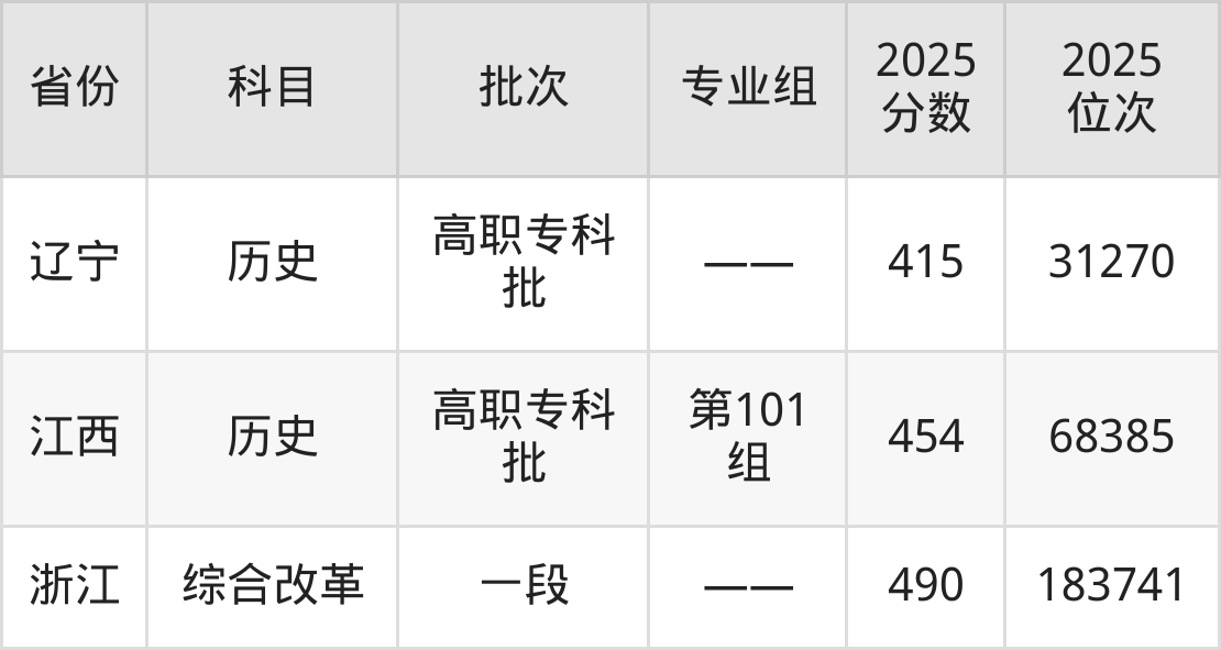 最高录取分数线是490分,对应位次是183741名,招生地区为浙江。