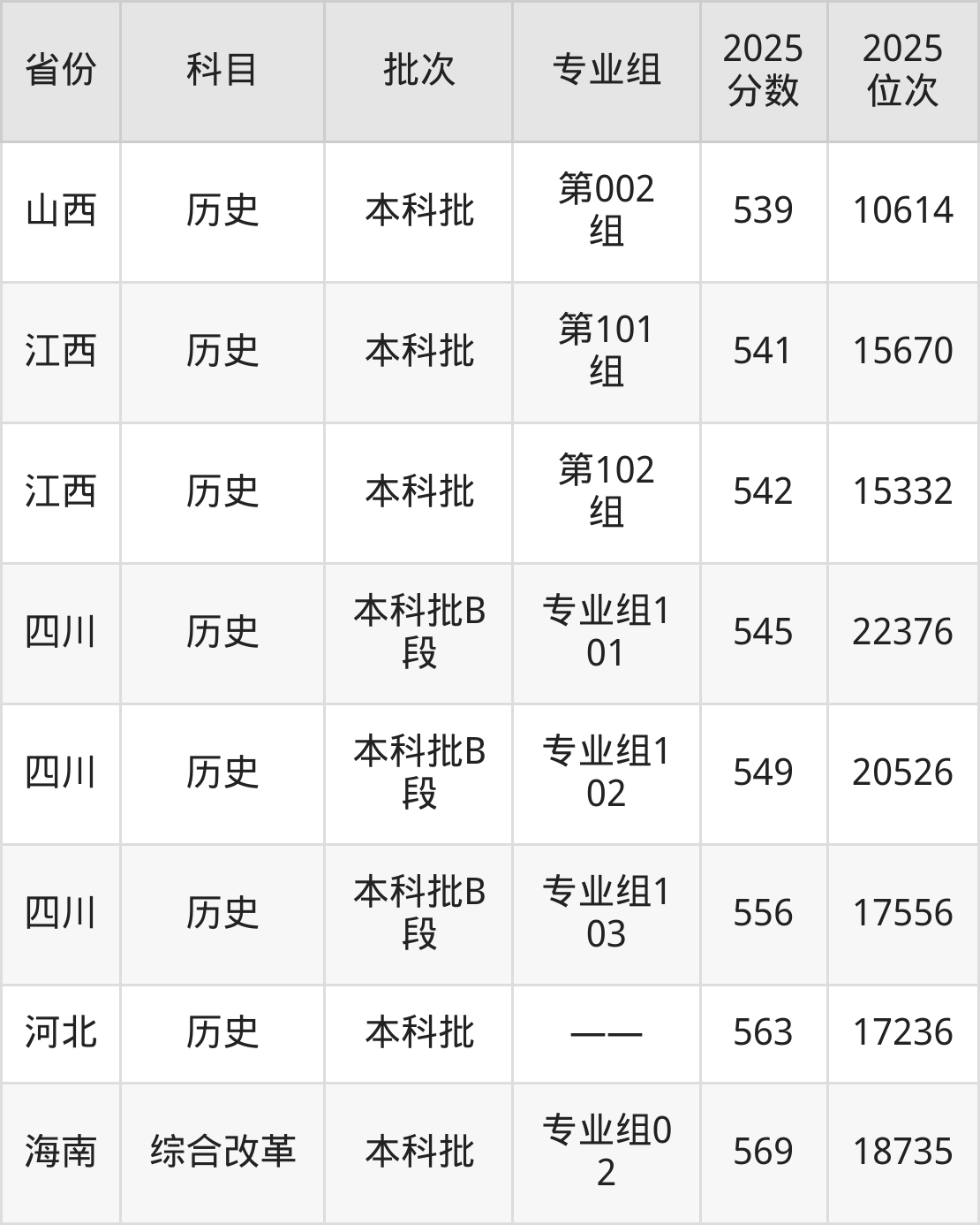 最高录取分数线是563分,对应位次是17236名,招生地区为河北。