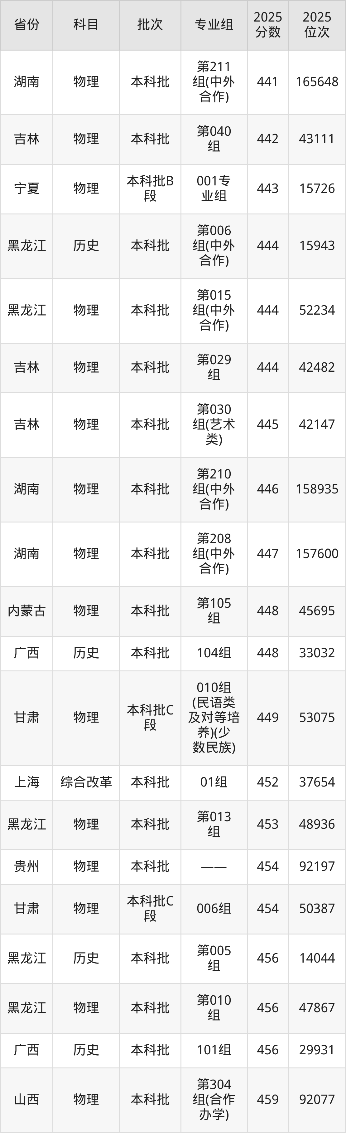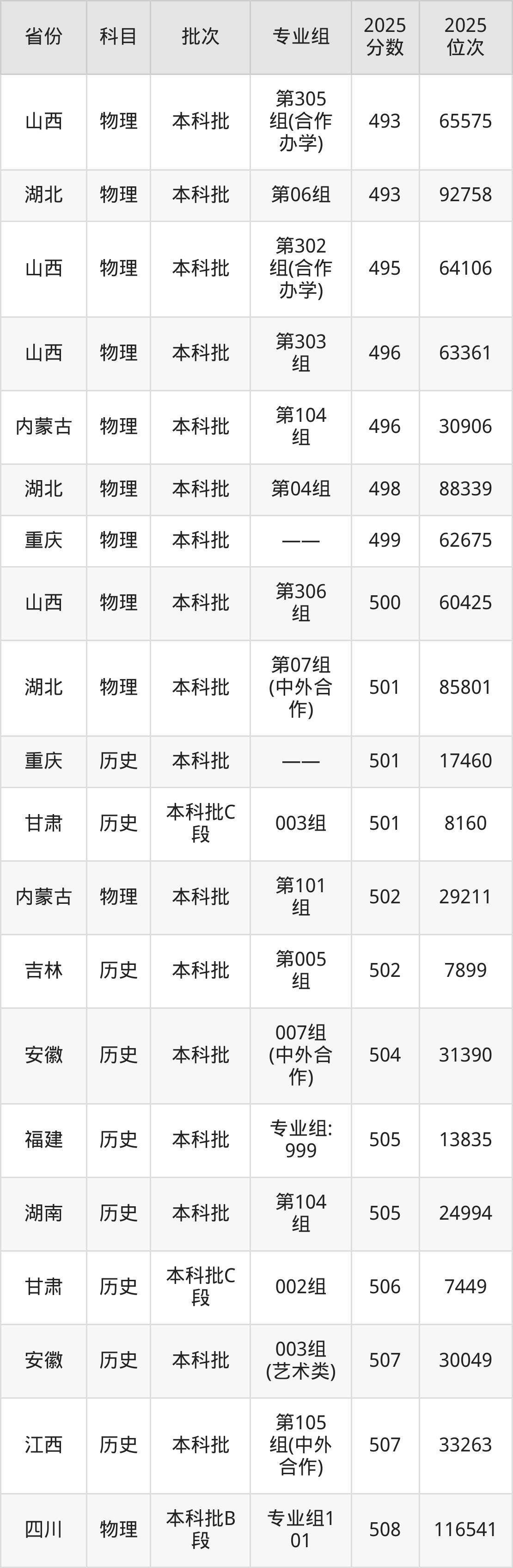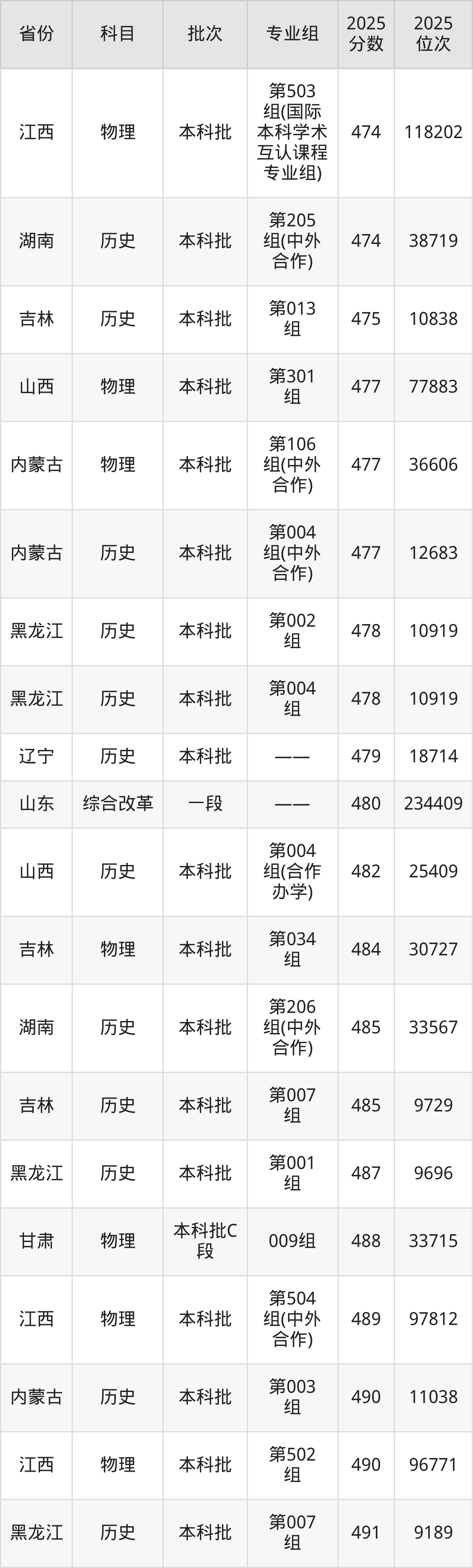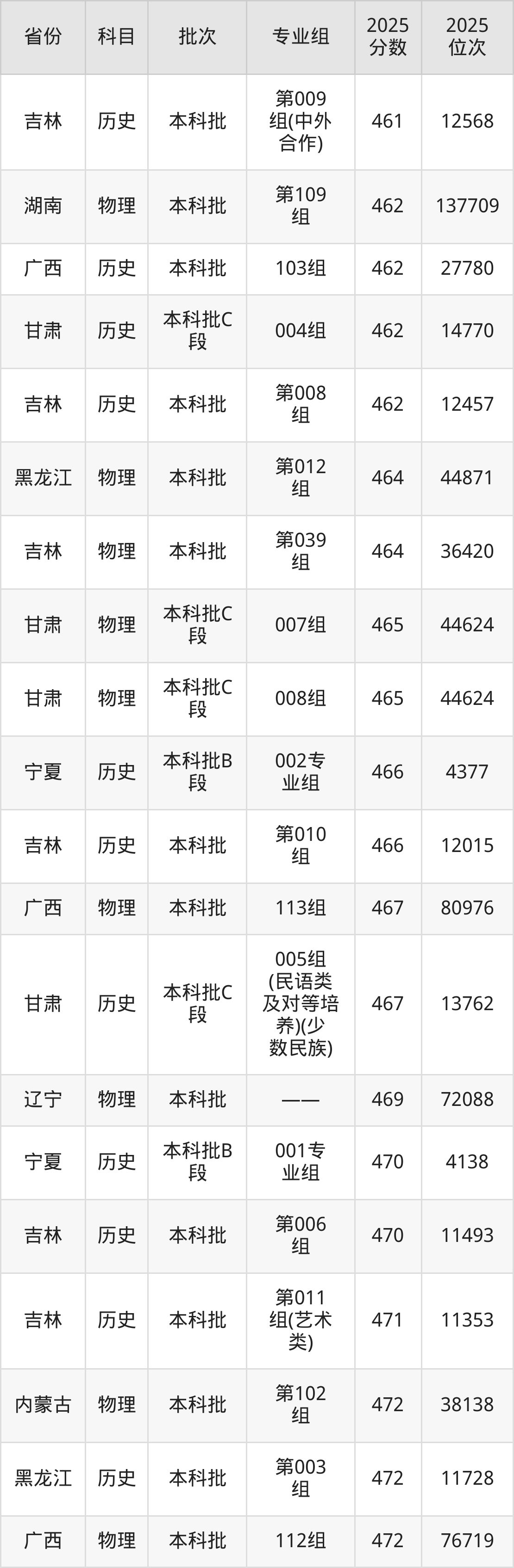 2025年吉林师范大学在各省普通批录取分数线一览表: