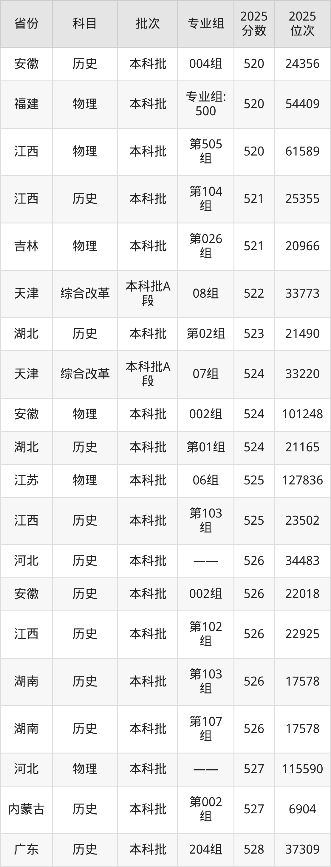 最高录取分数线是532分,对应位次是117992名,招生地区为江苏。