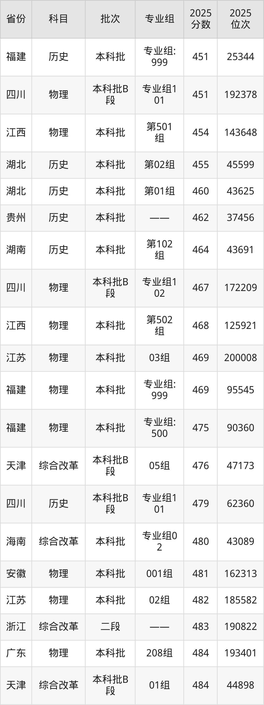 最低录取分数线是476分,对应位次是47173名,招生地区为天津;