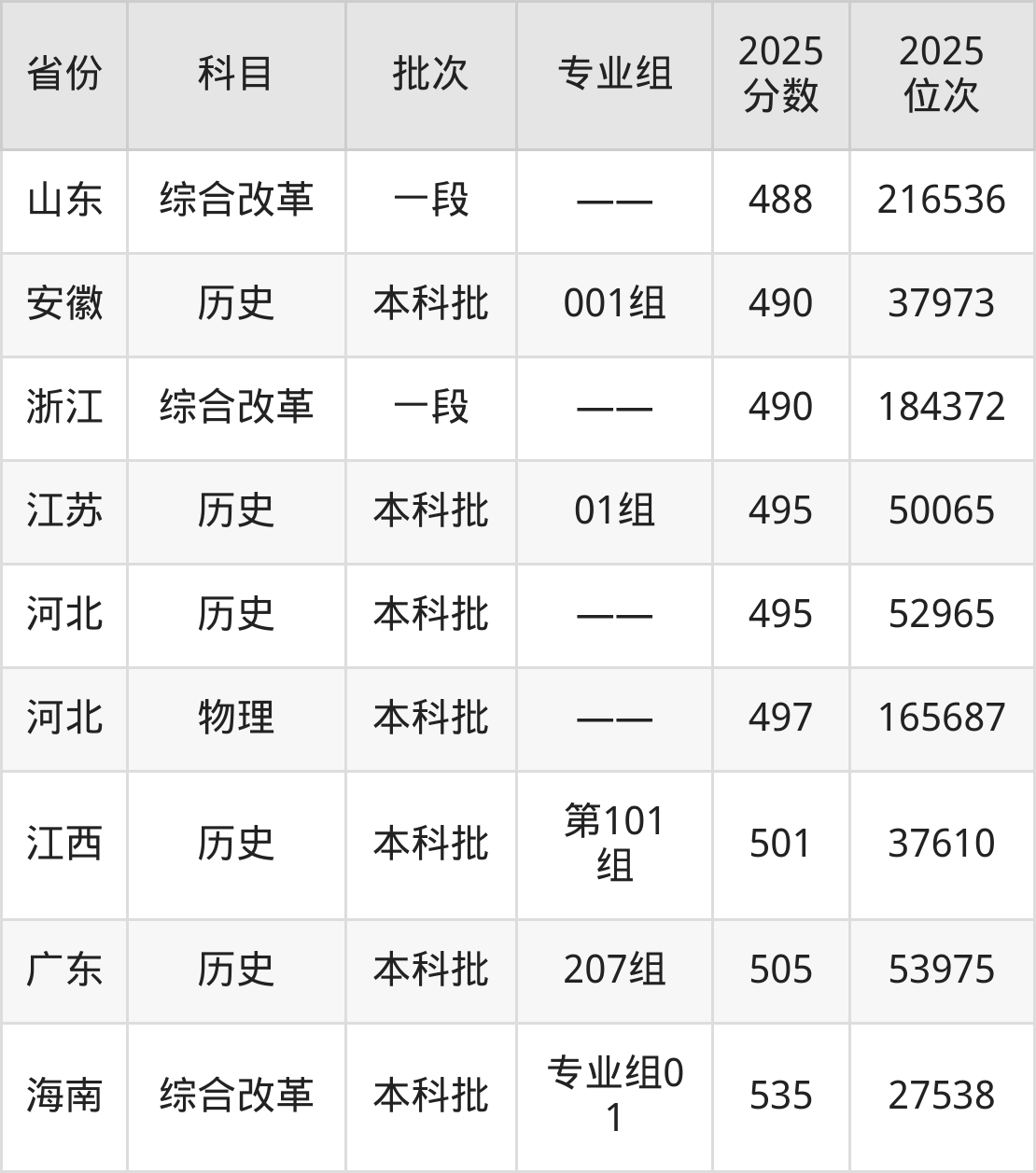 最高录取分数线是535分,对应位次是27538名,招生地区为海南。