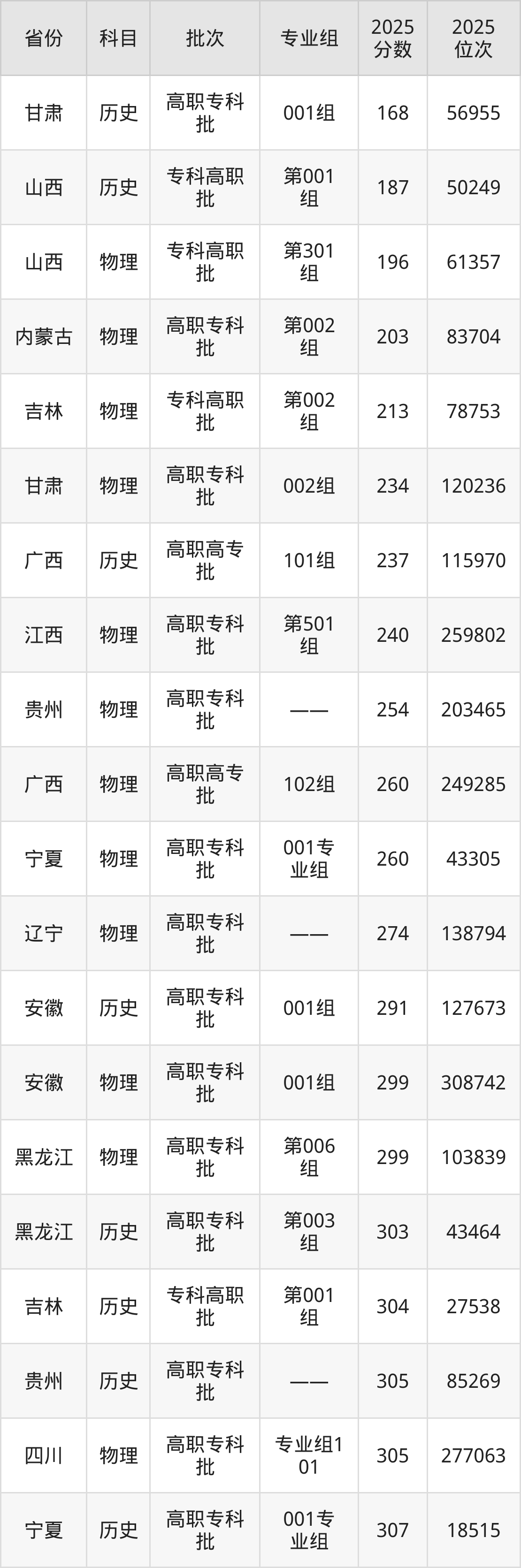2025年黑龙江旅游职业技术学院在各省普通批录取分数线一览表: