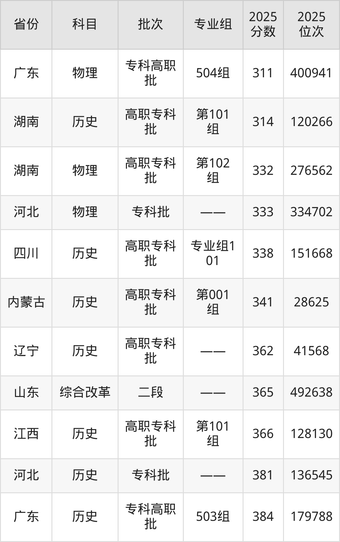 最高录取分数线是384分,对应位次是179788名,招生地区为广东。