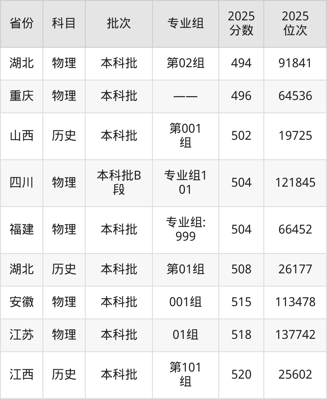 最高录取分数线是520分,对应位次是25602名,招生地区为江西。