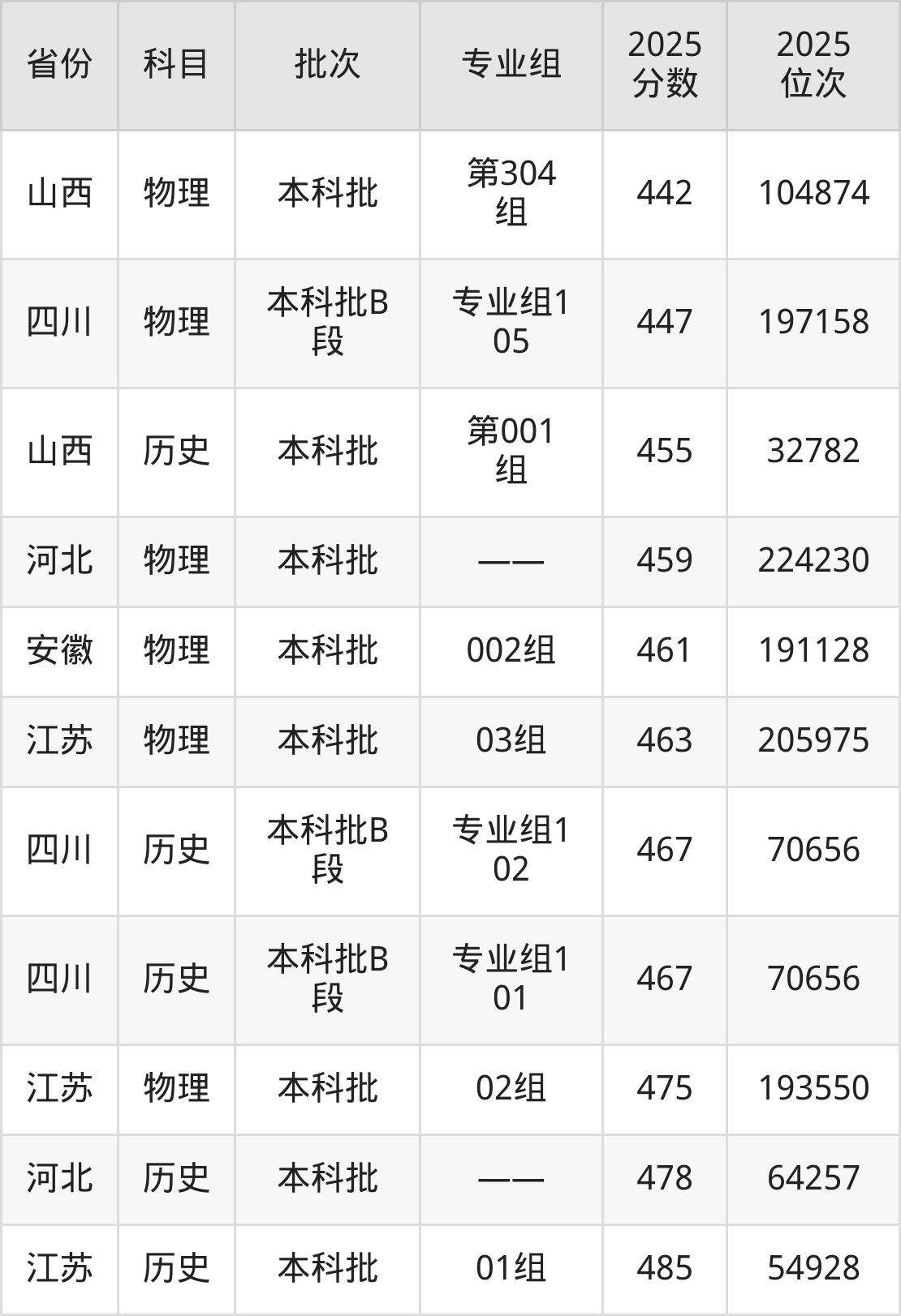 最高录取分数线是475分,对应位次是193550名,招生地区为江苏。
