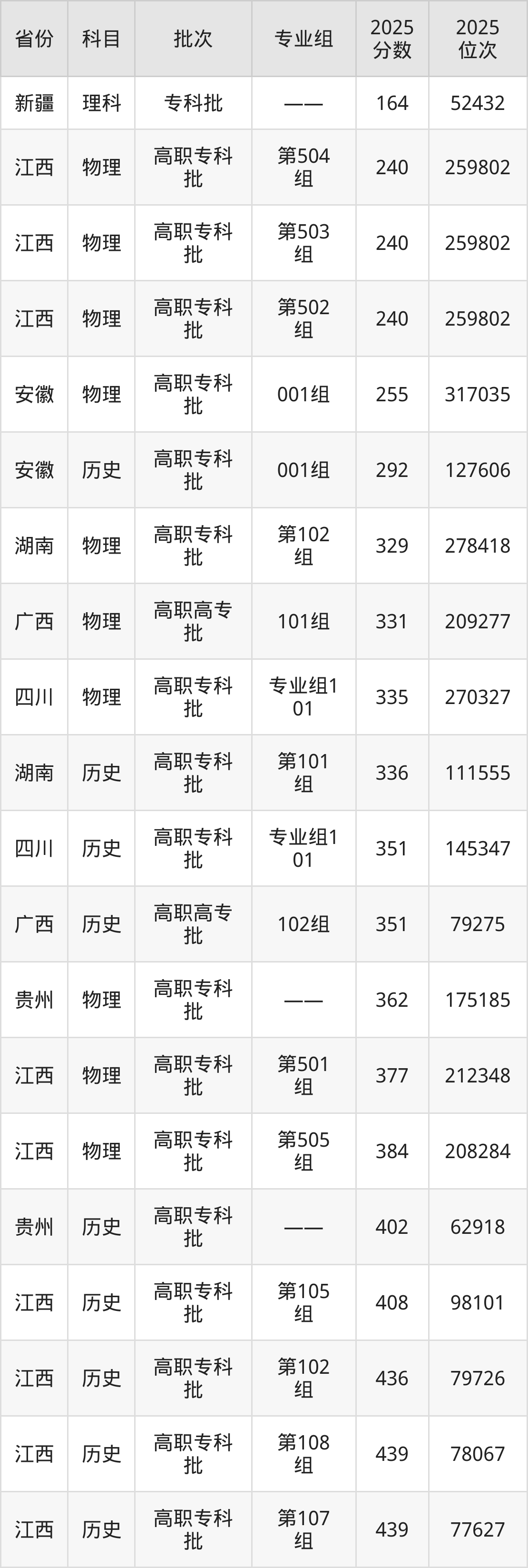 最高录取分数线是384分,对应位次是208284名,招生地区为江西。