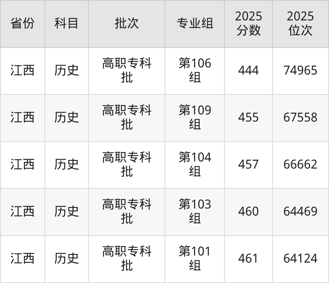 最高录取分数线是461分,对应位次是64124名,招生地区为江西。