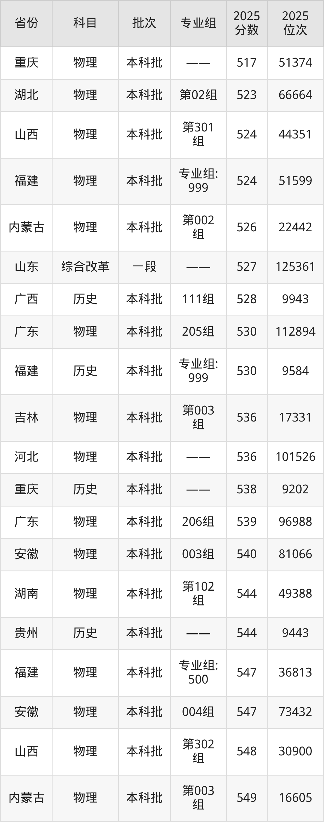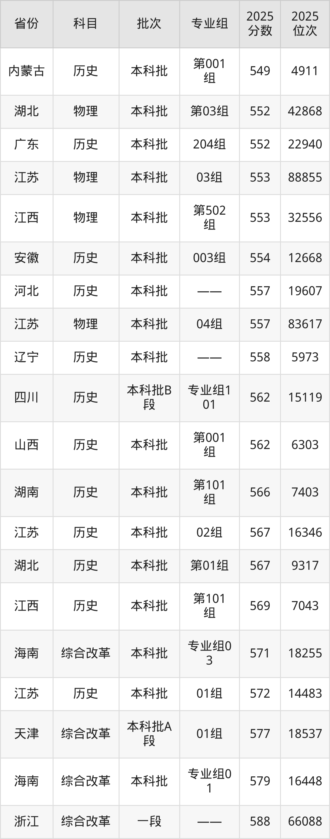 最高录取分数线是557分,对应位次是83617名,招生地区为江苏。