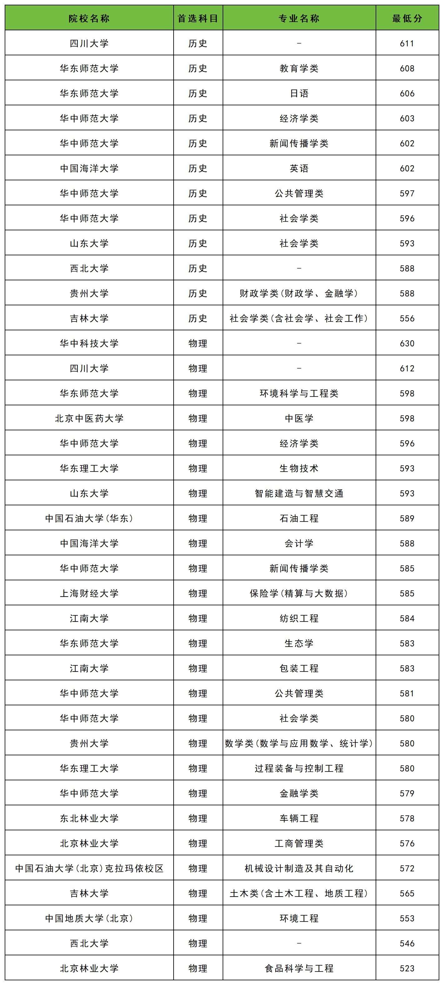 华东师范大学:历史类606分、物理类583分;