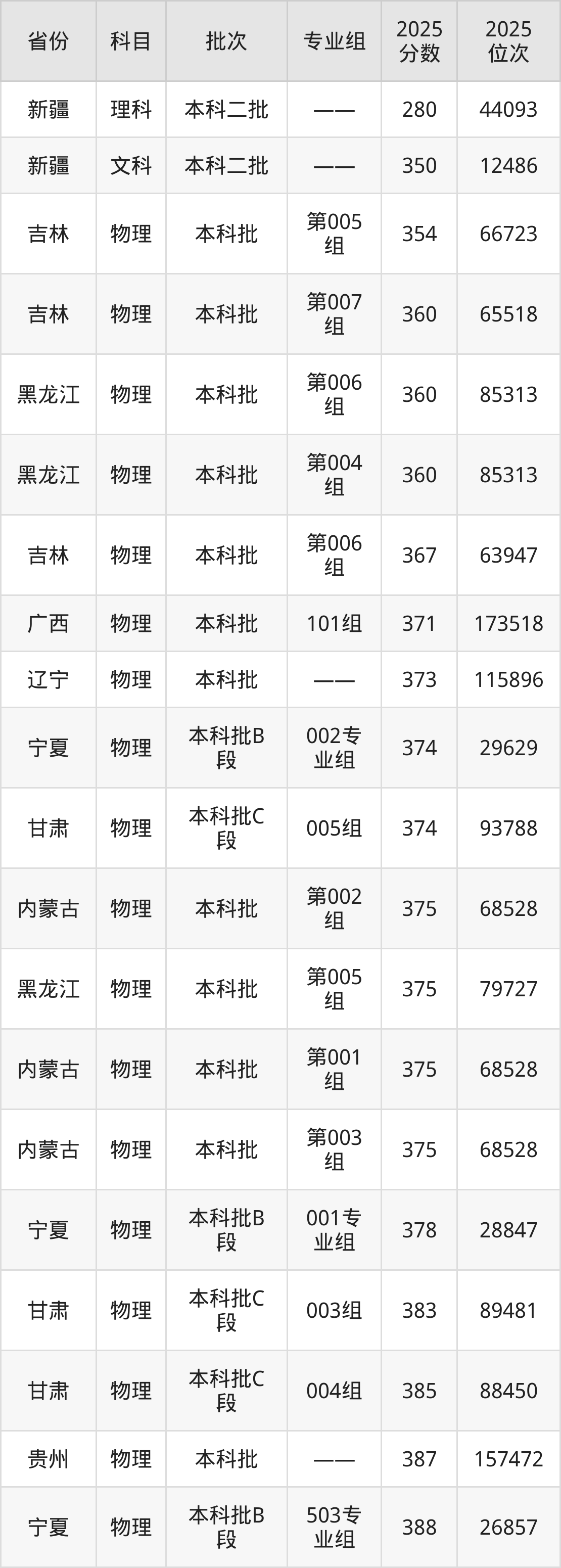 最低录取分数线是280分,对应位次是44093名,招生地区为新疆;