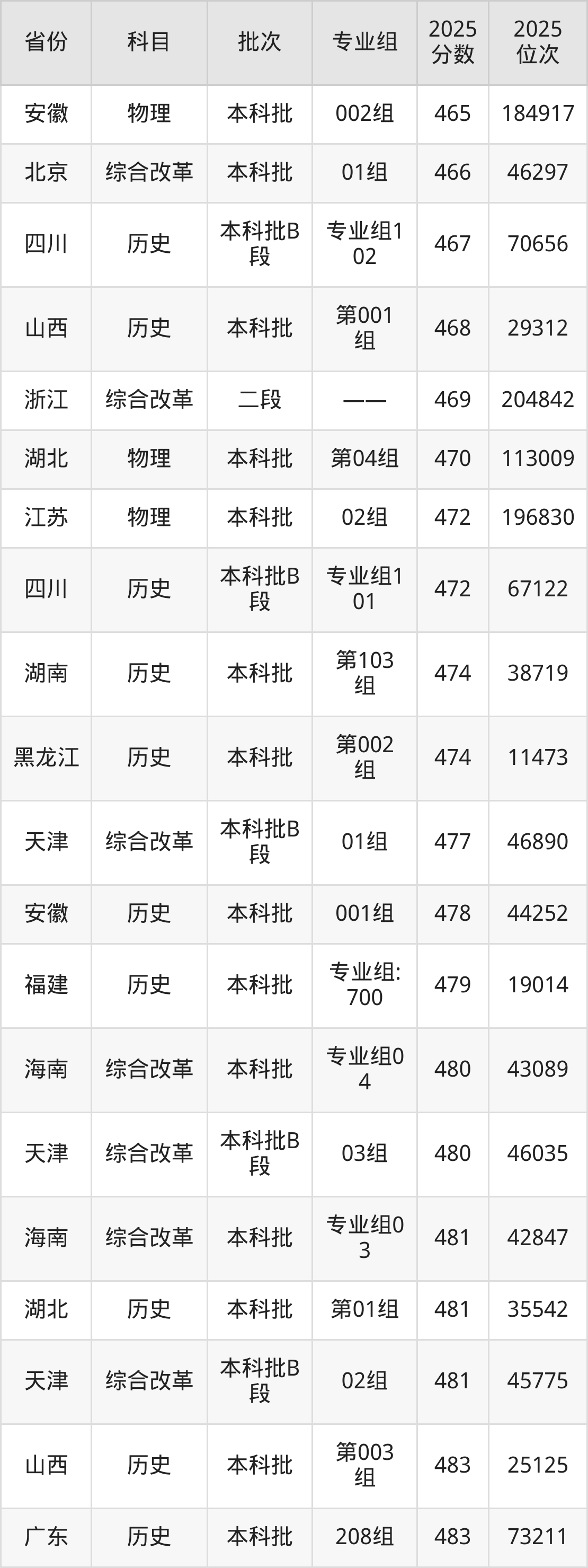 最高录取分数线是472分,对应位次是196830名,招生地区为江苏。