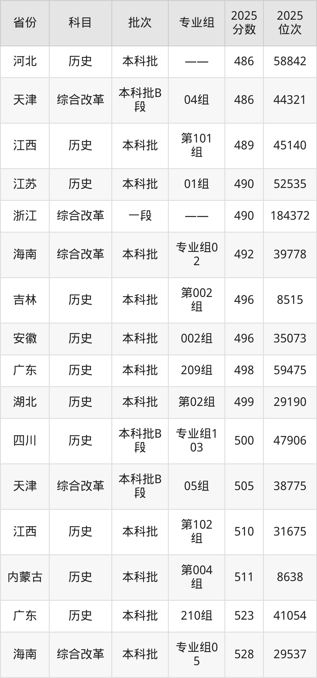 最高录取分数线是528分,对应位次是29537名,招生地区为海南。