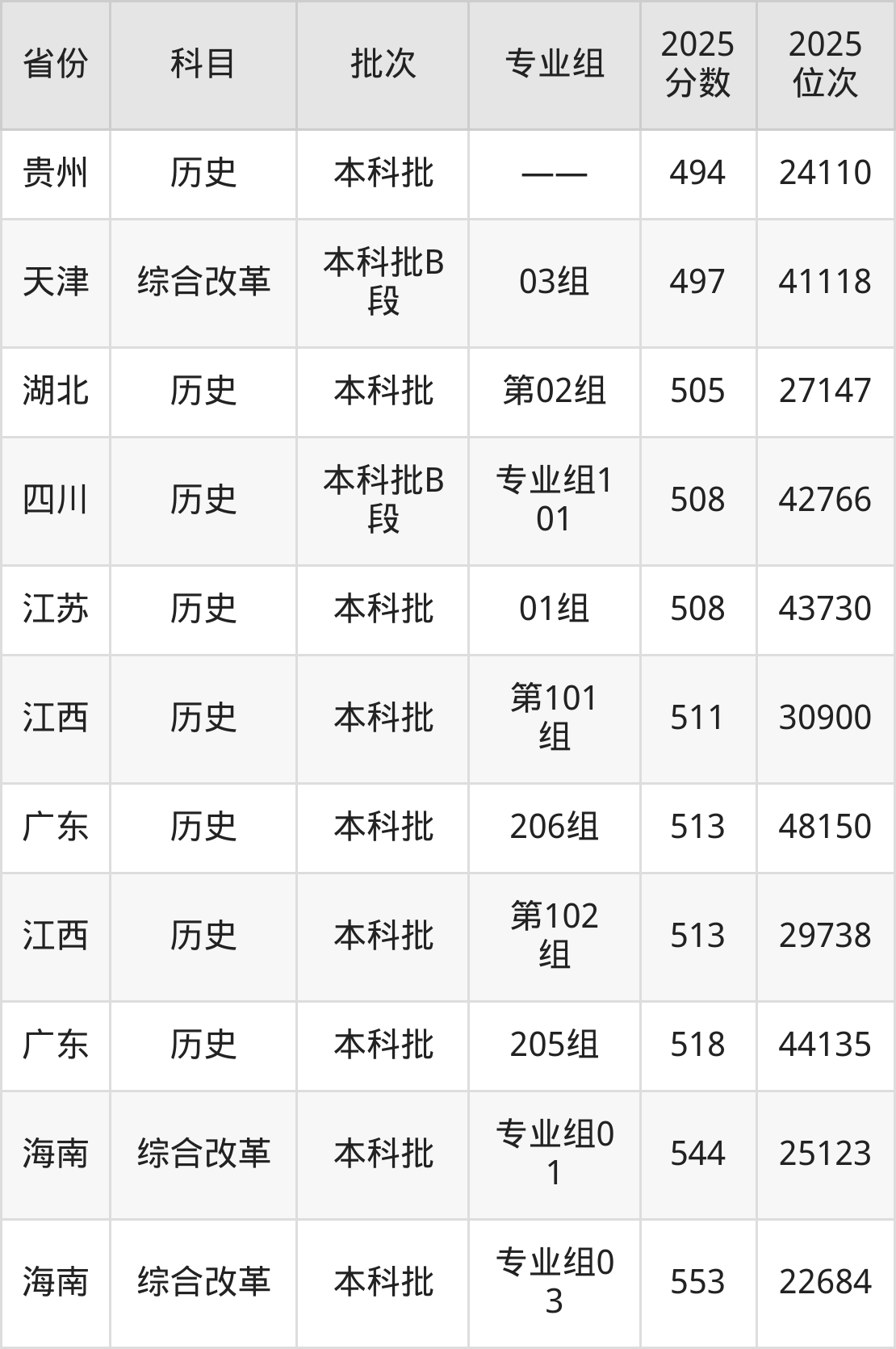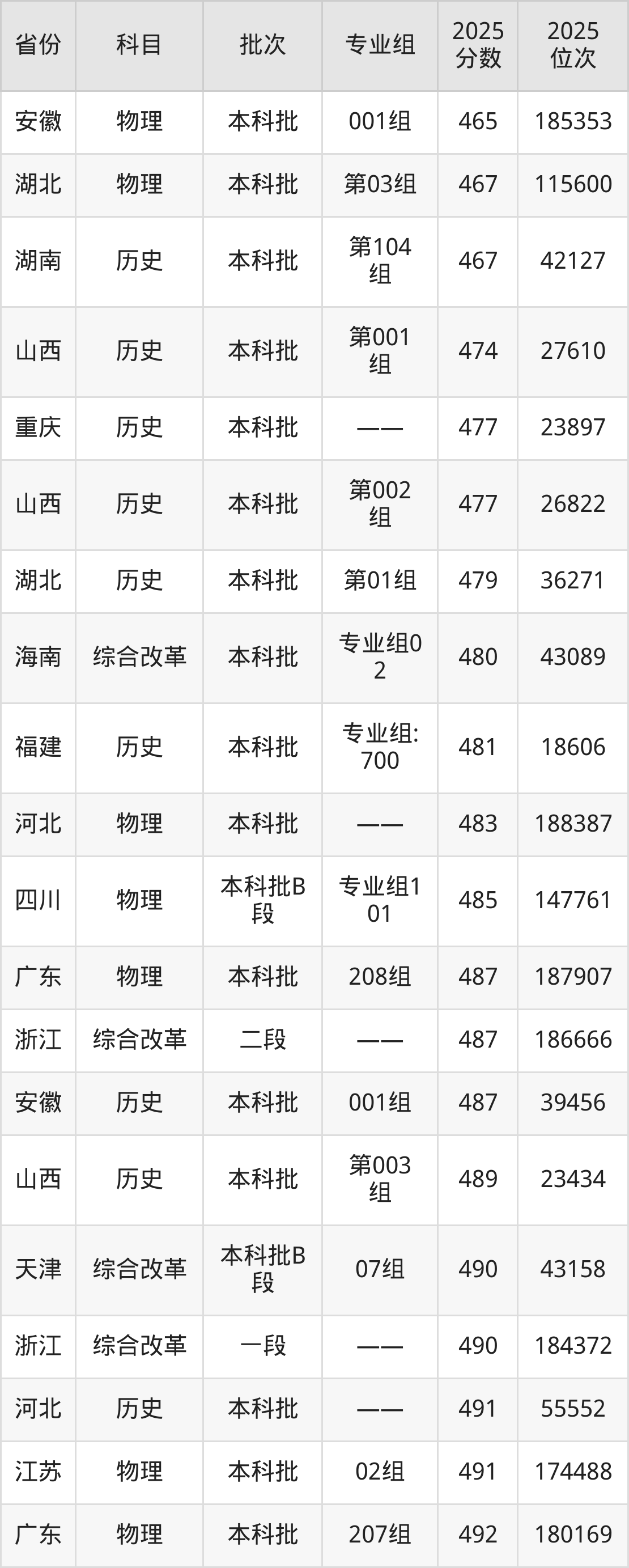 最高录取分数线是492分,对应位次是180169名,招生地区为广东。