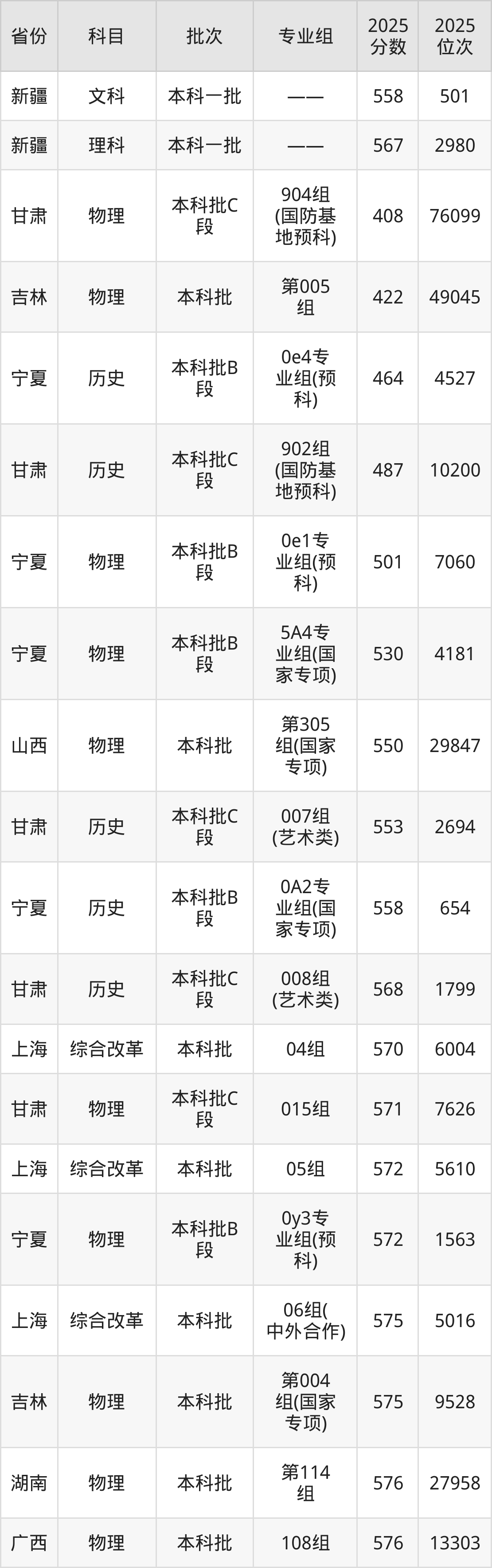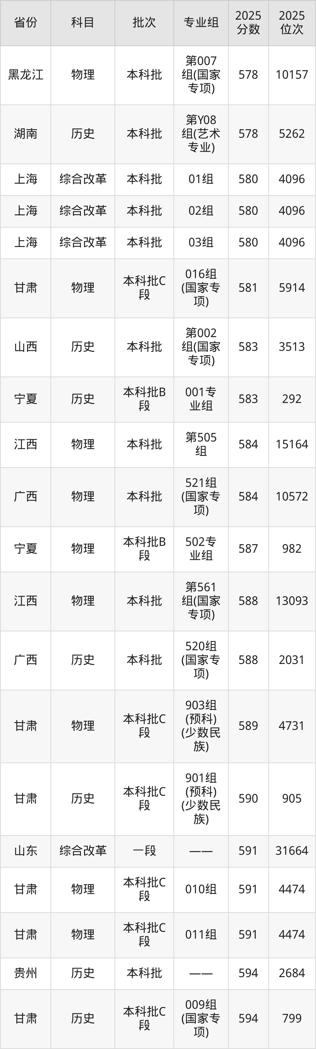 最低录取分数线是570分,对应位次是6004名,招生地区为上海;