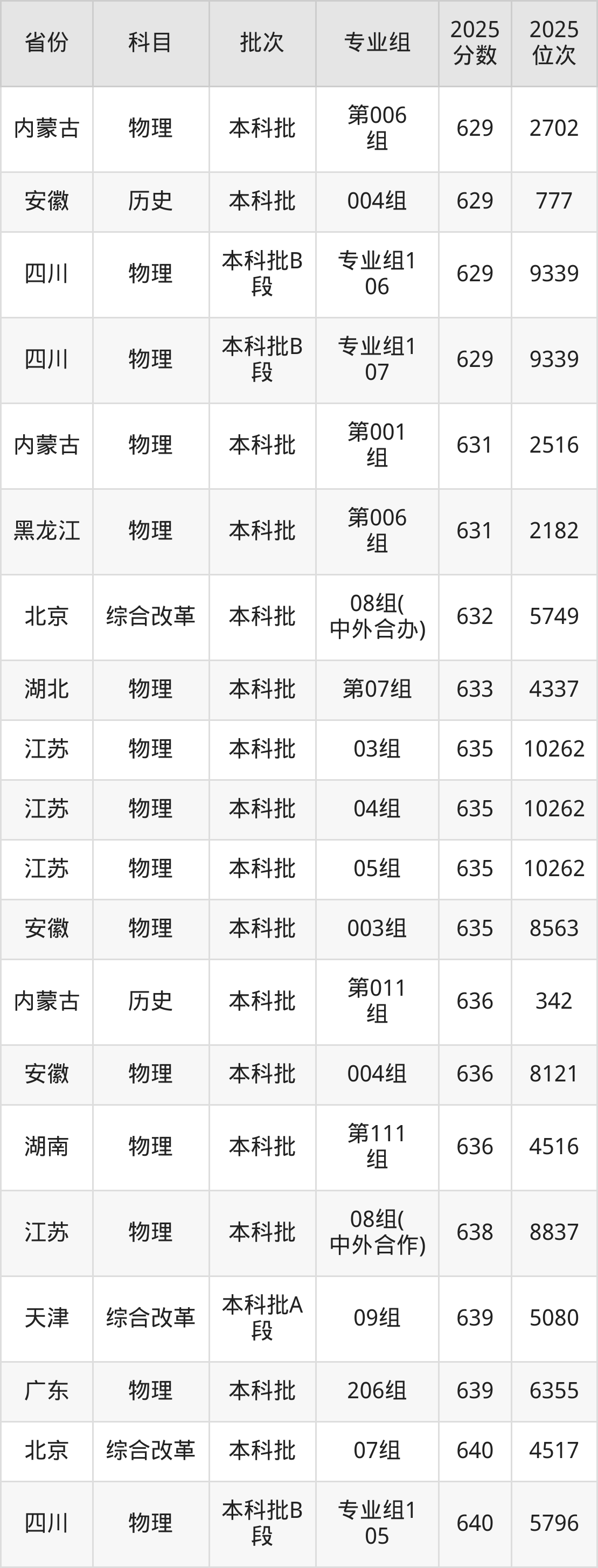 最高录取分数线是636分,对应位次是342名,招生地区为内蒙古。