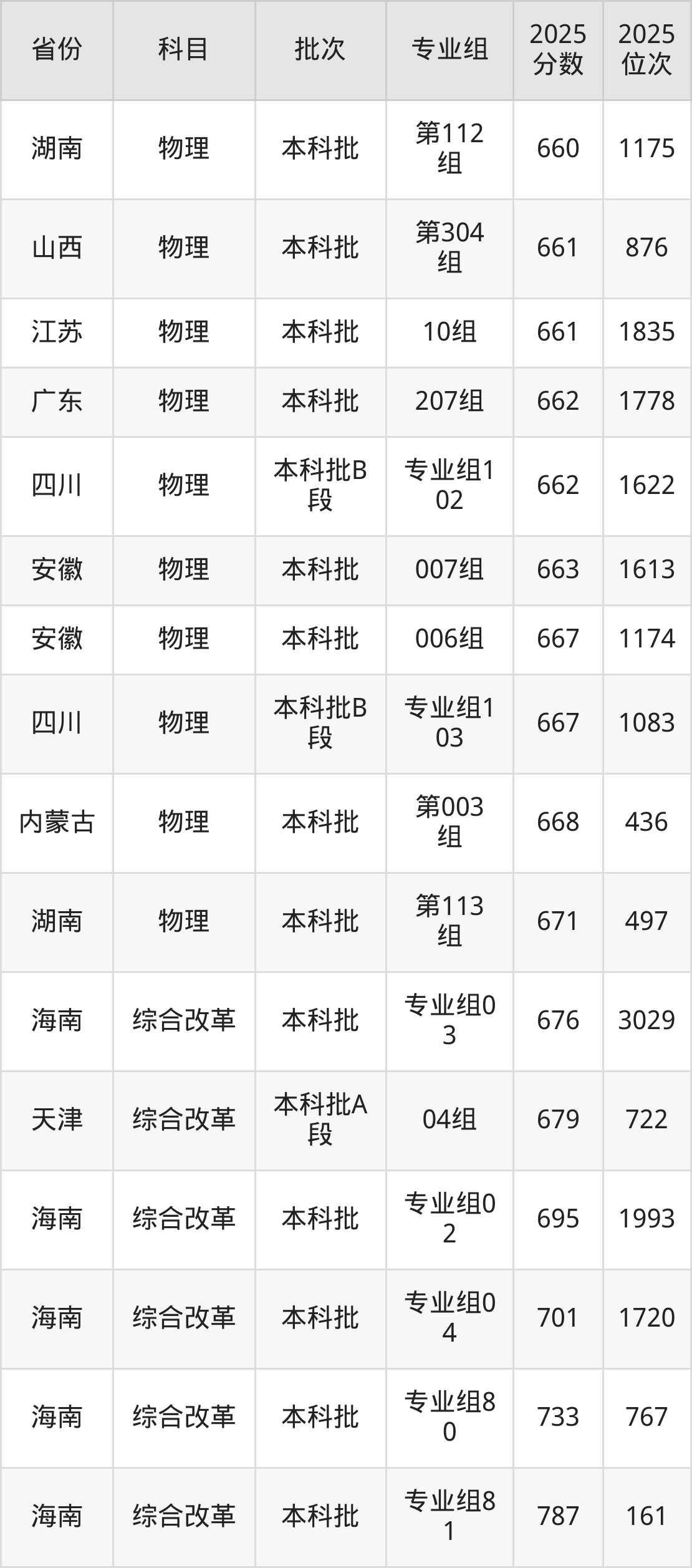 最高录取分数线是671分,对应位次是497名,招生地区为湖南。