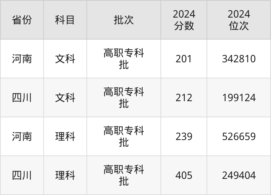 最低录取分数线是201分,对应位次是342810名,招生地区为河南;