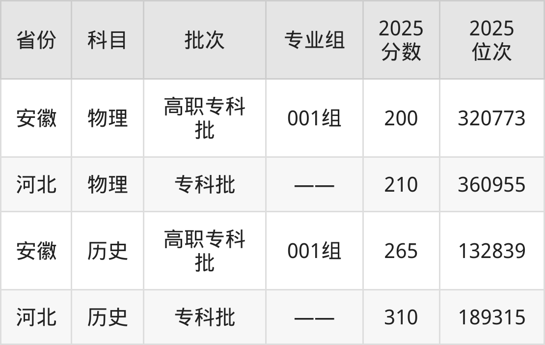 最低录取分数线是200分,对应位次是320773名,招生地区为安徽;