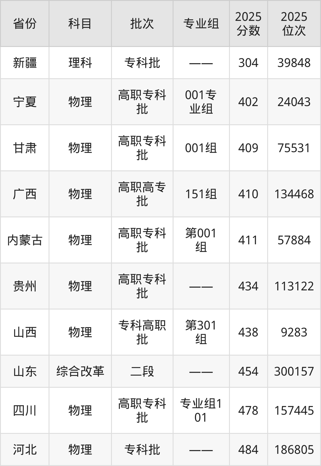2025年西安电力高等专科学校在各省物理类和理科的录取分数线位于304分-484分之间。