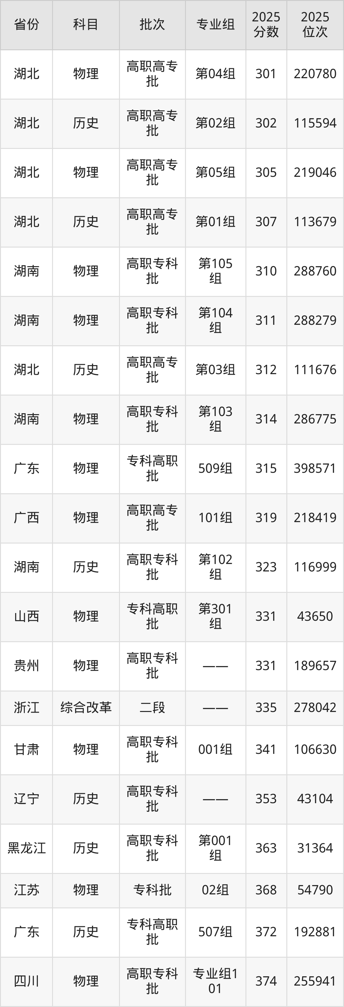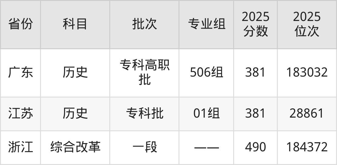 最高录取分数线是381分,对应位次是183032名,招生地区为广东。