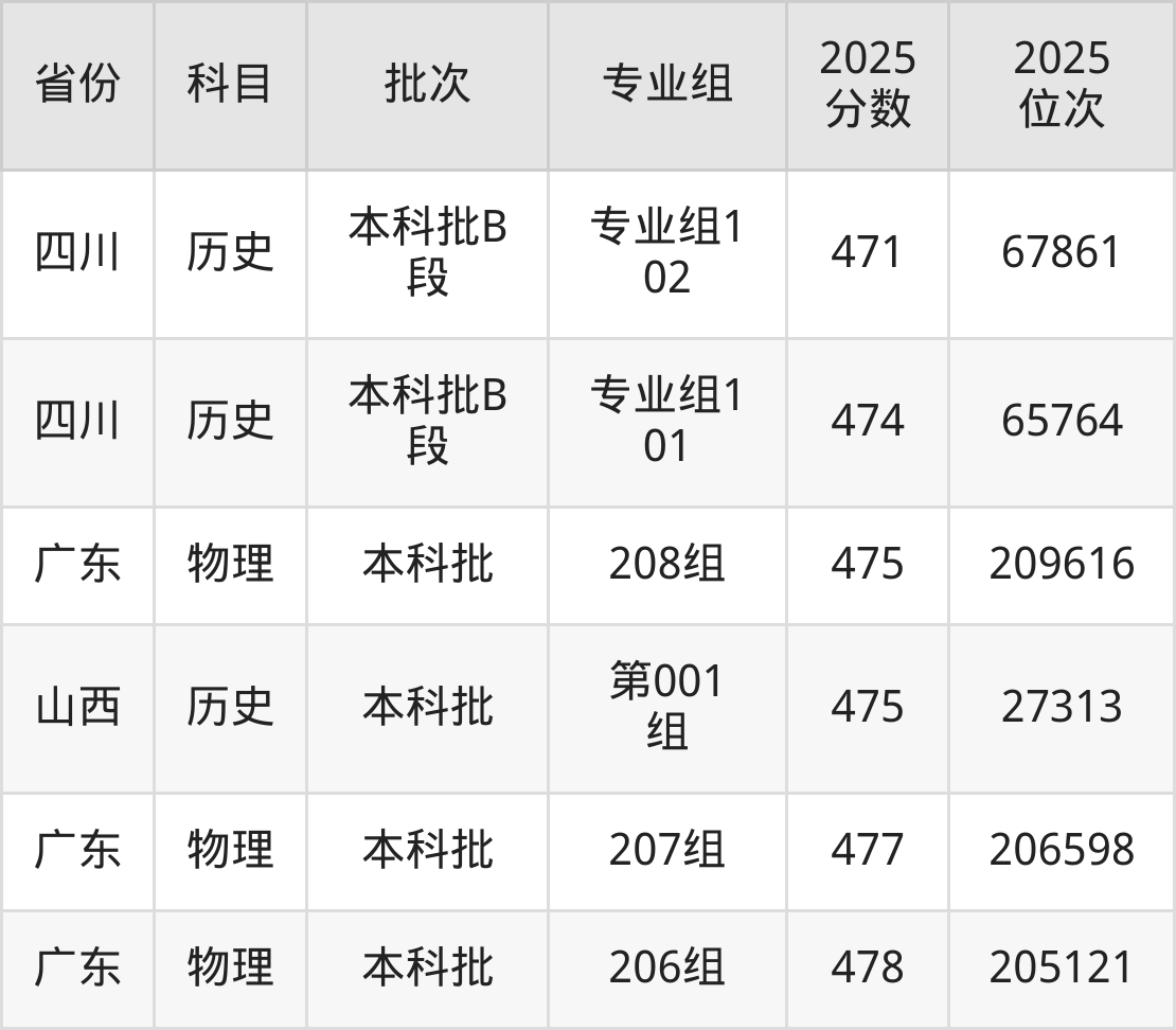 最高录取分数线是475分,对应位次是27313名,招生地区为山西。