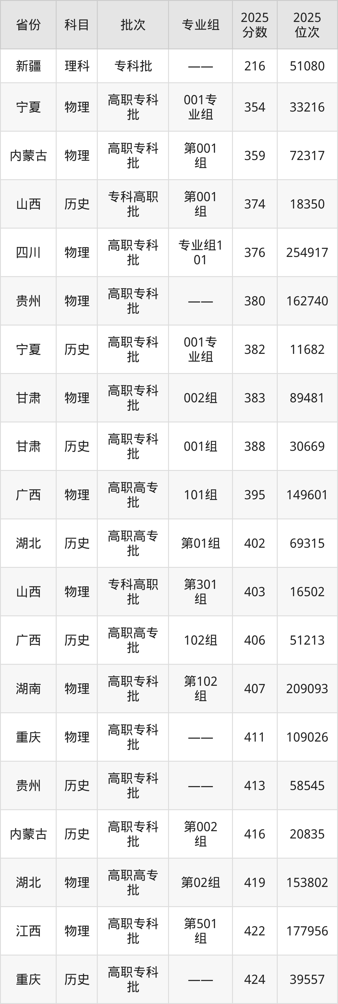 最低录取分数线是216分,对应位次是51080名,招生地区为新疆;