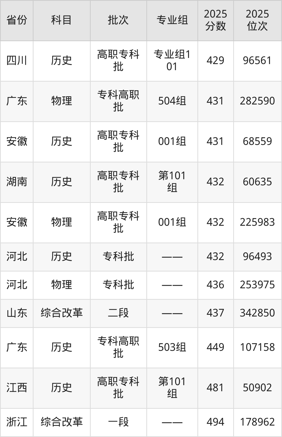 最高录取分数线是494分,对应位次是178962名,招生地区为浙江。
