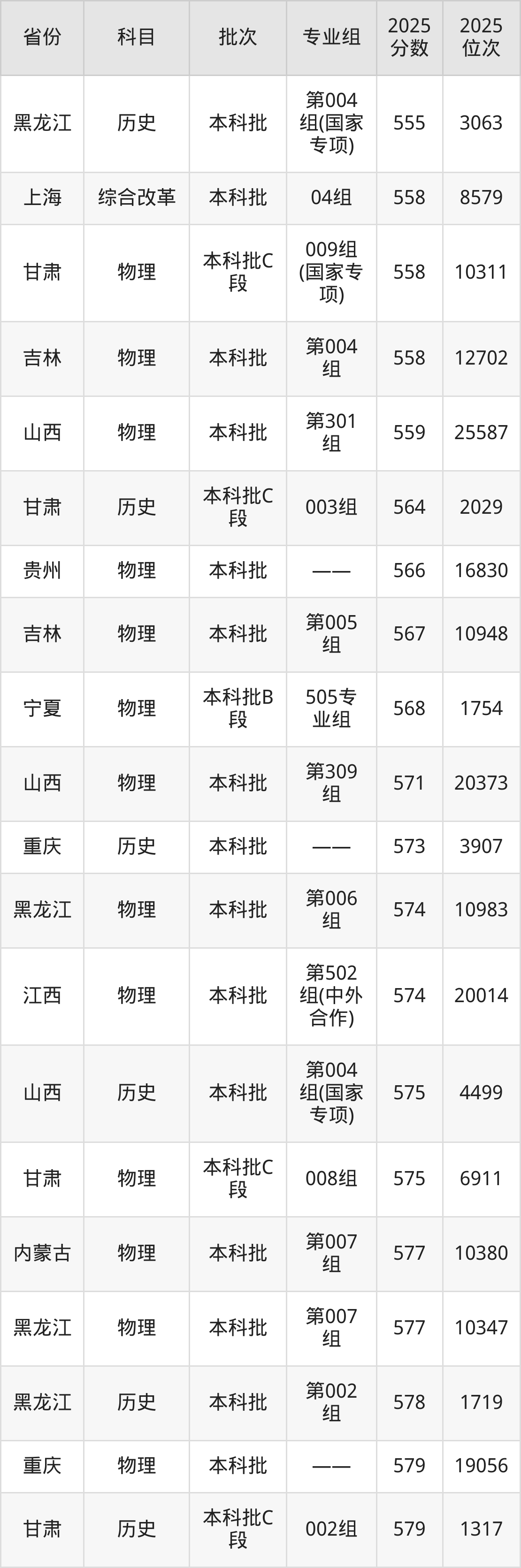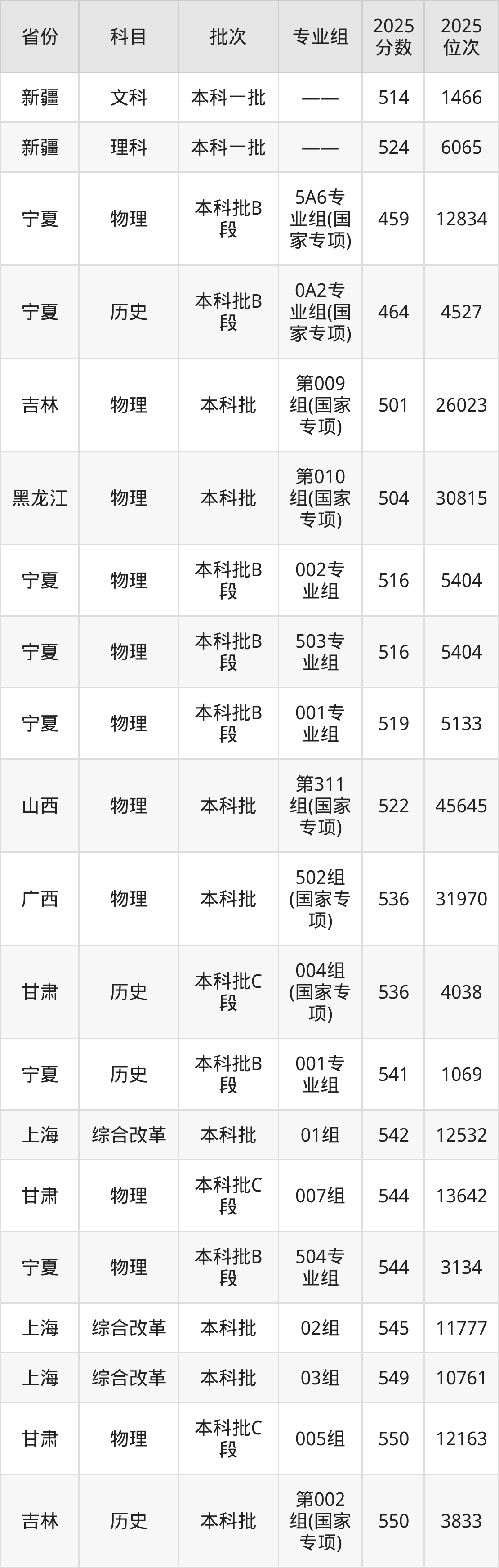 最低录取分数线是542分,对应位次是12532名,招生地区为上海;