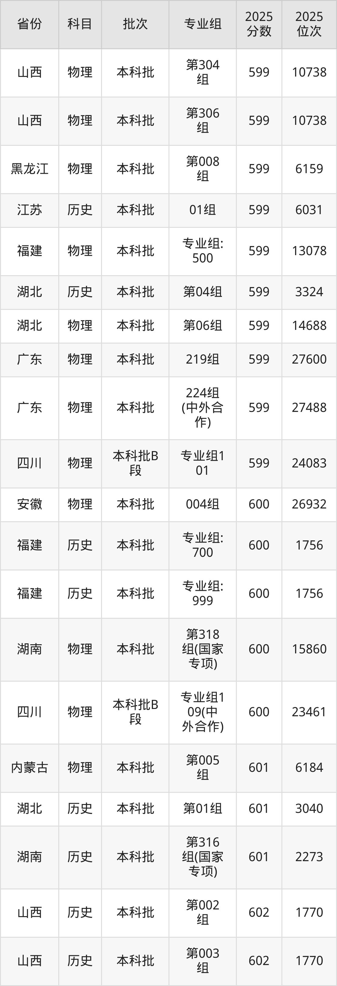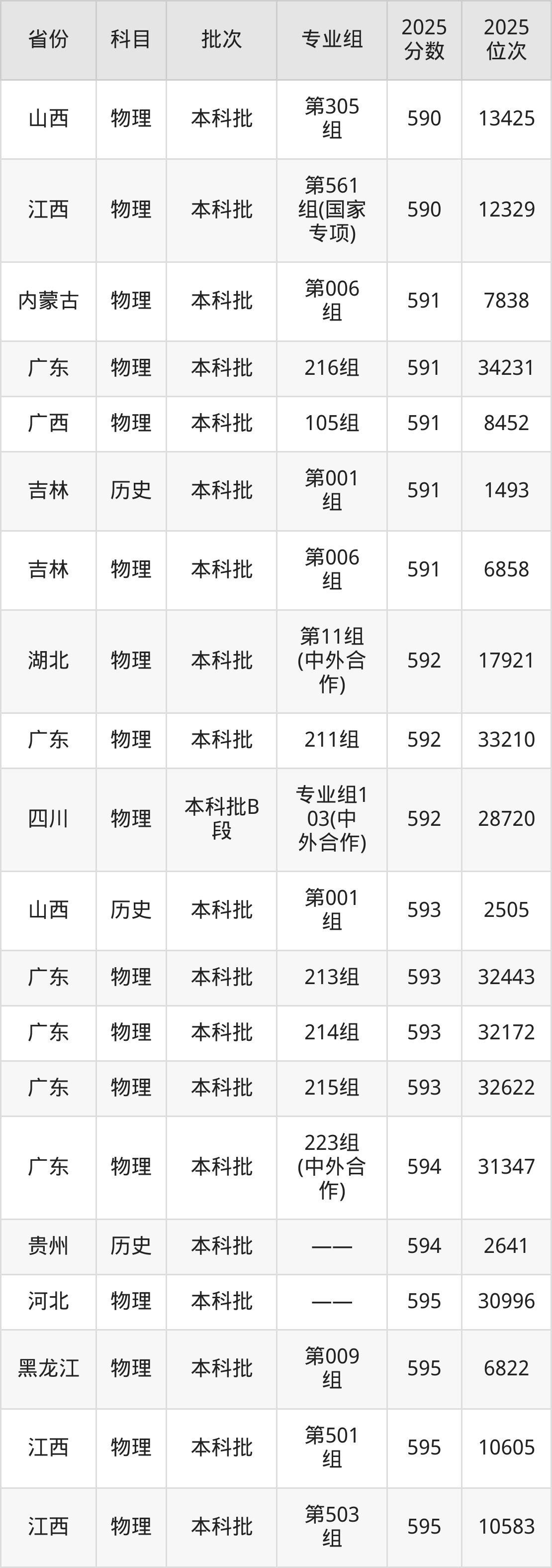 2025年暨南大学在各省物理类和理科的录取分数线位于459分-624分之间。