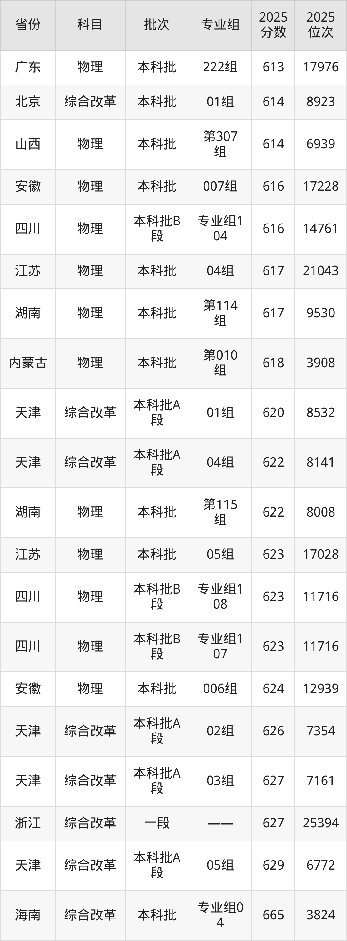 最高录取分数线是613分,对应位次是2810名,招生地区为广东。