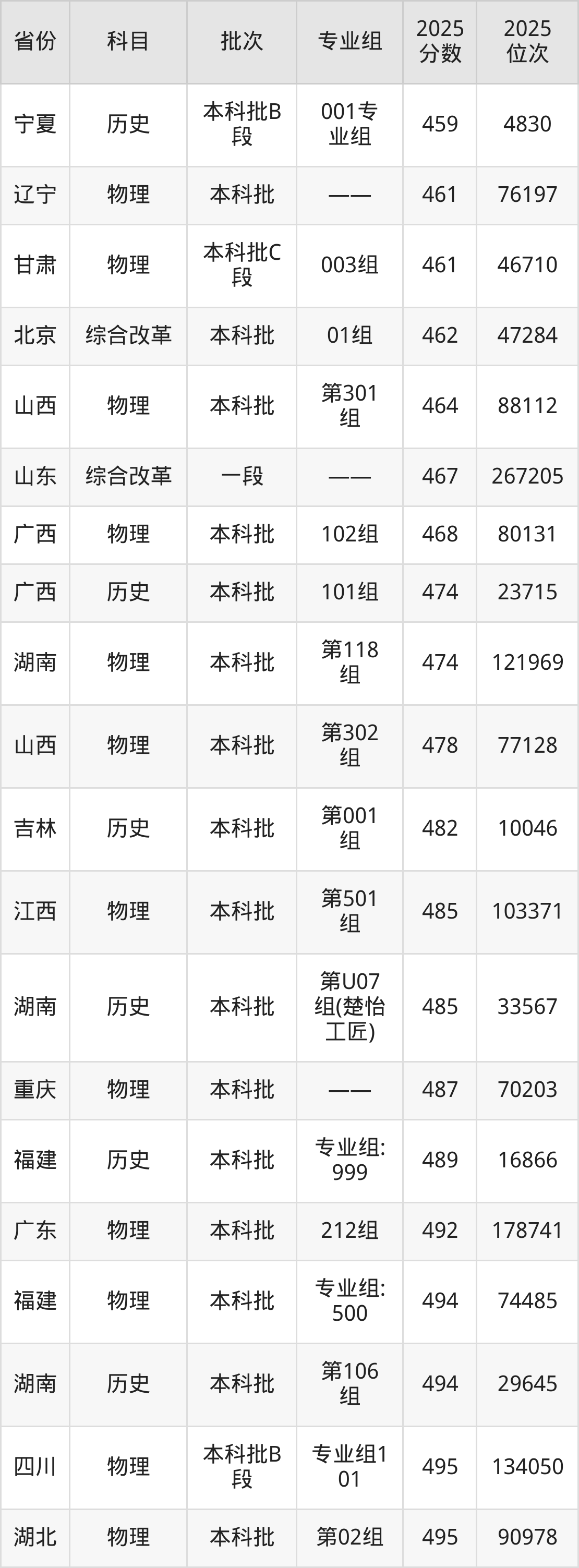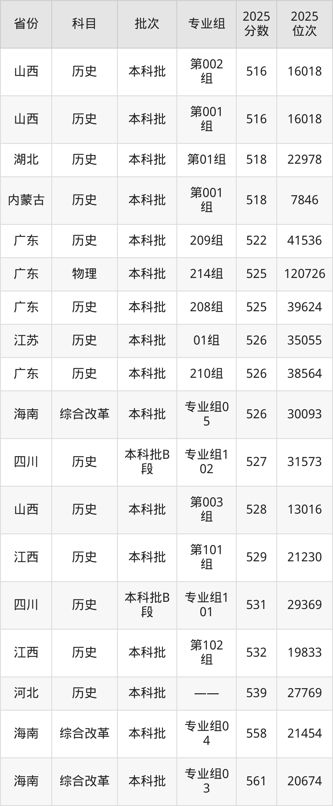 最高录取分数线是561分,对应位次是20674名,招生地区为海南。