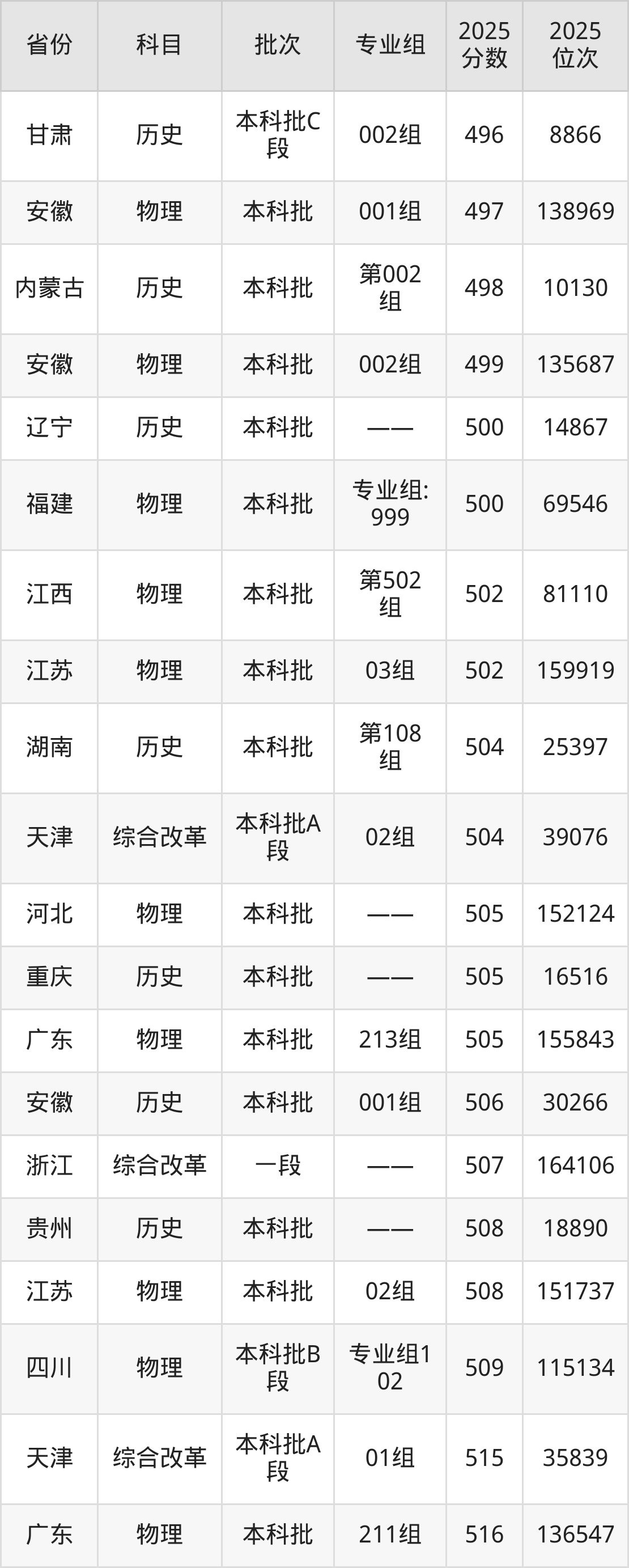 最高录取分数线是525分,对应位次是120726名,招生地区为广东。
