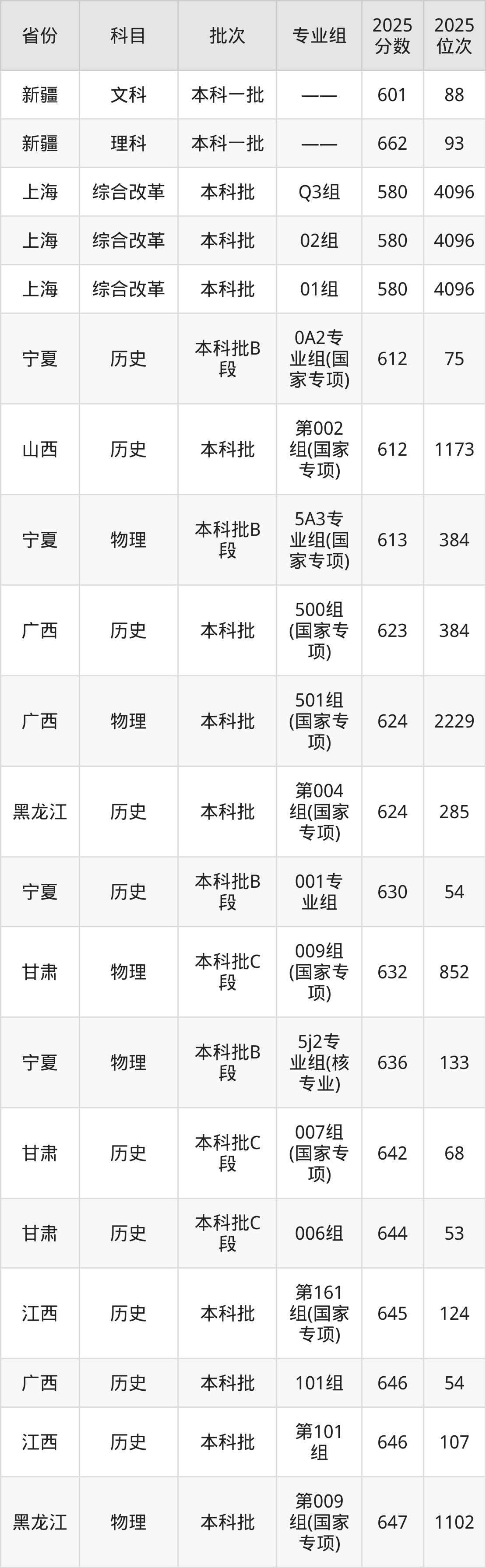 最低录取分数线是601分,对应位次是88名,招生地区为新疆;